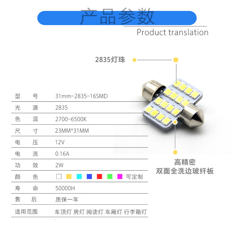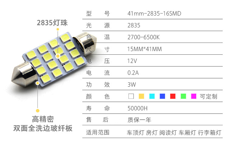 Обработка пользовательского двойного наконечника 2835 автомобиля 31 36 39 41 мм для автомобиля Four Seasons лампы для чтения светодиодные потолочные светильники