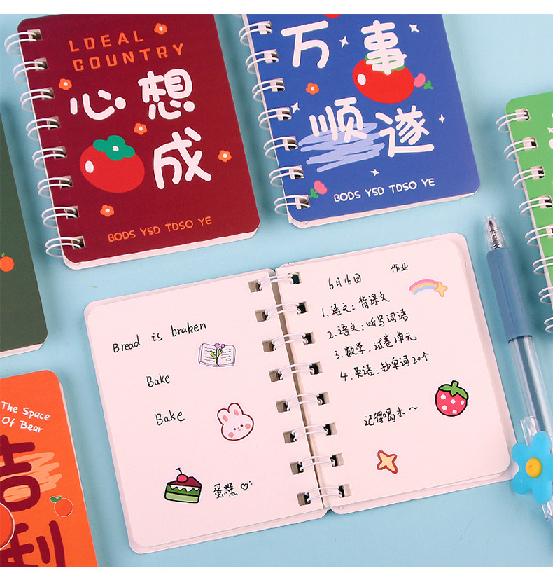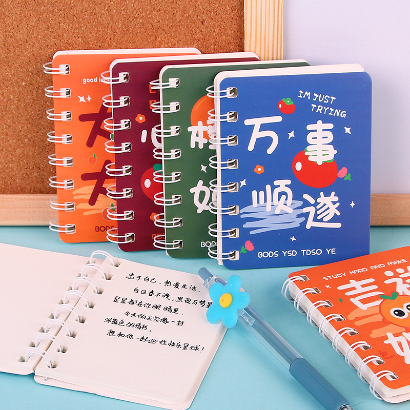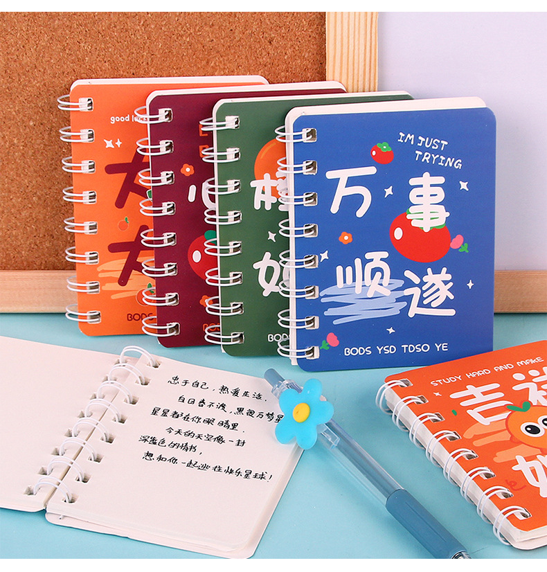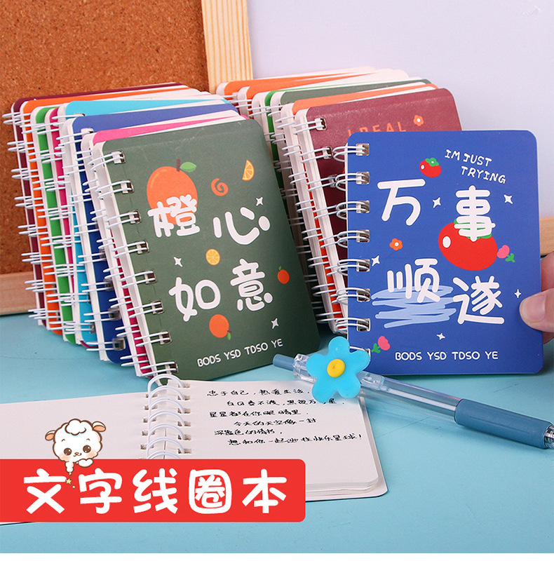 Милый текстовый блокнот с боковым поворотом A7, блокнот с катушкой, портативный карманный мини-блокнот с вкладными листами, утолщенный блокнот 80