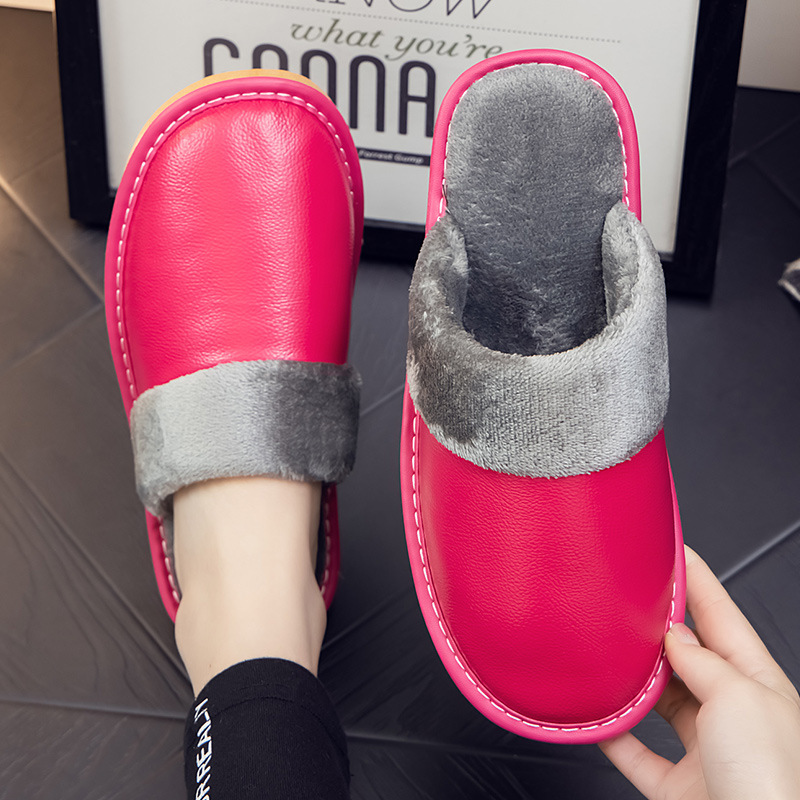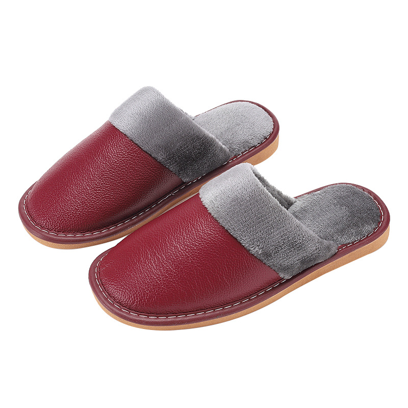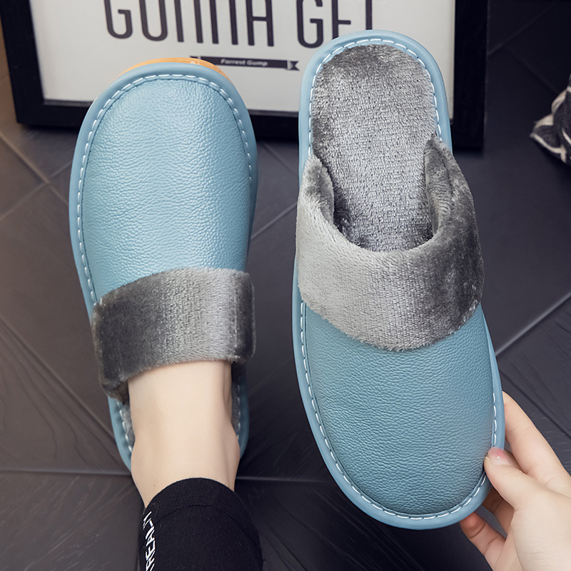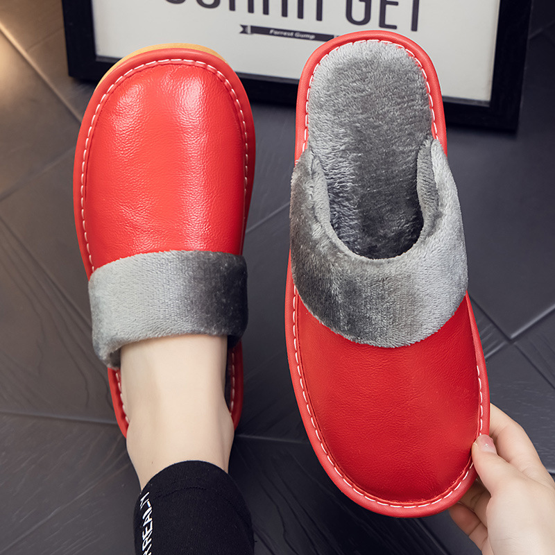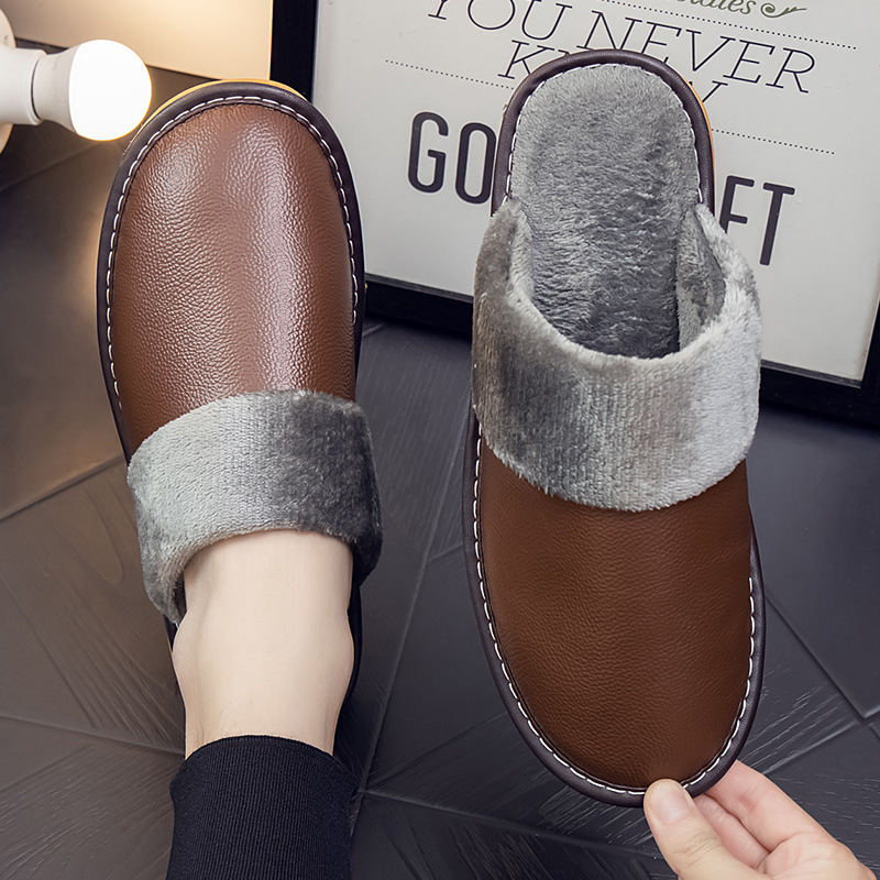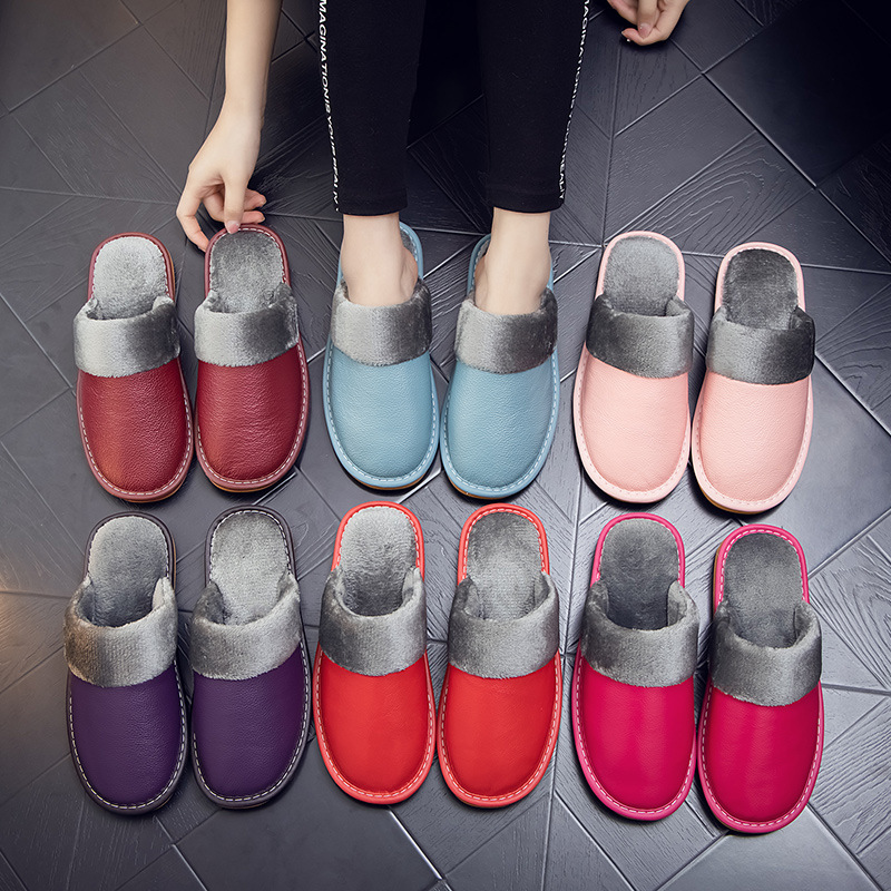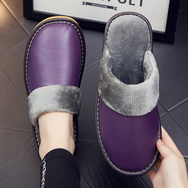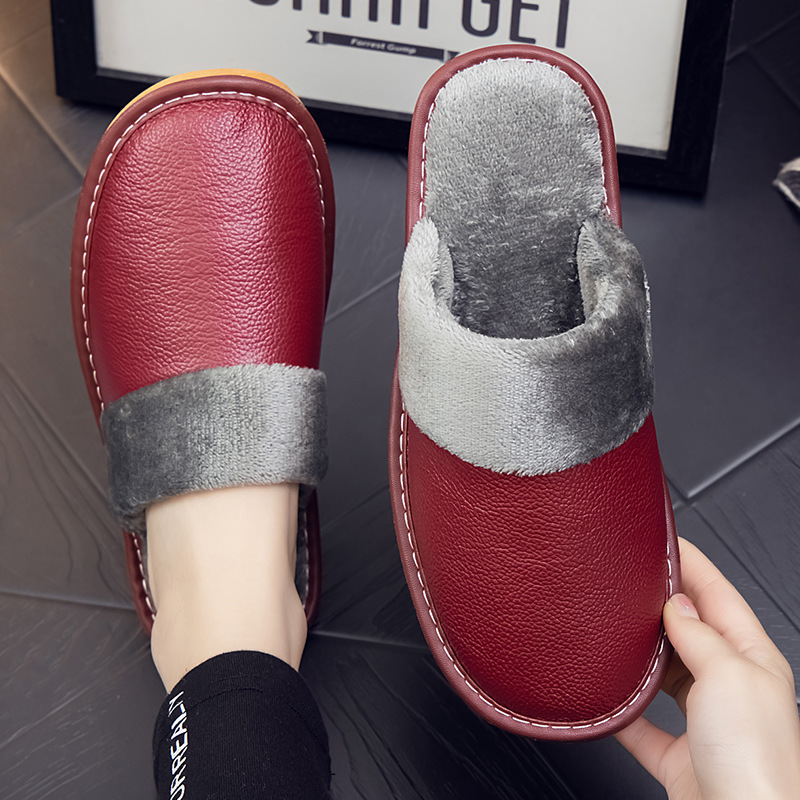 Осенне-зимние тапочки из воловьей кожи для мужчин и женщин, домашние Нескользящие кожаные непромокаемые зимние теплые тапочки на толстой подошве
