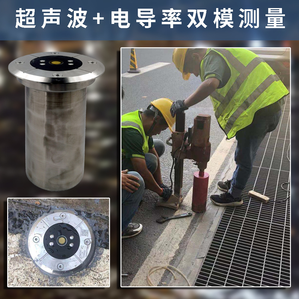 此设备采用隐藏式地埋安装方式,符合现在城市景观需求。双模(超声波与电导率)工作方式可以很好解决产品电池续航问题,利用内部智能的算法,自动切换测量模式,有效地降低产品功耗。