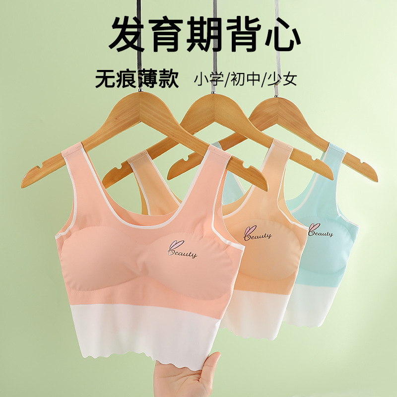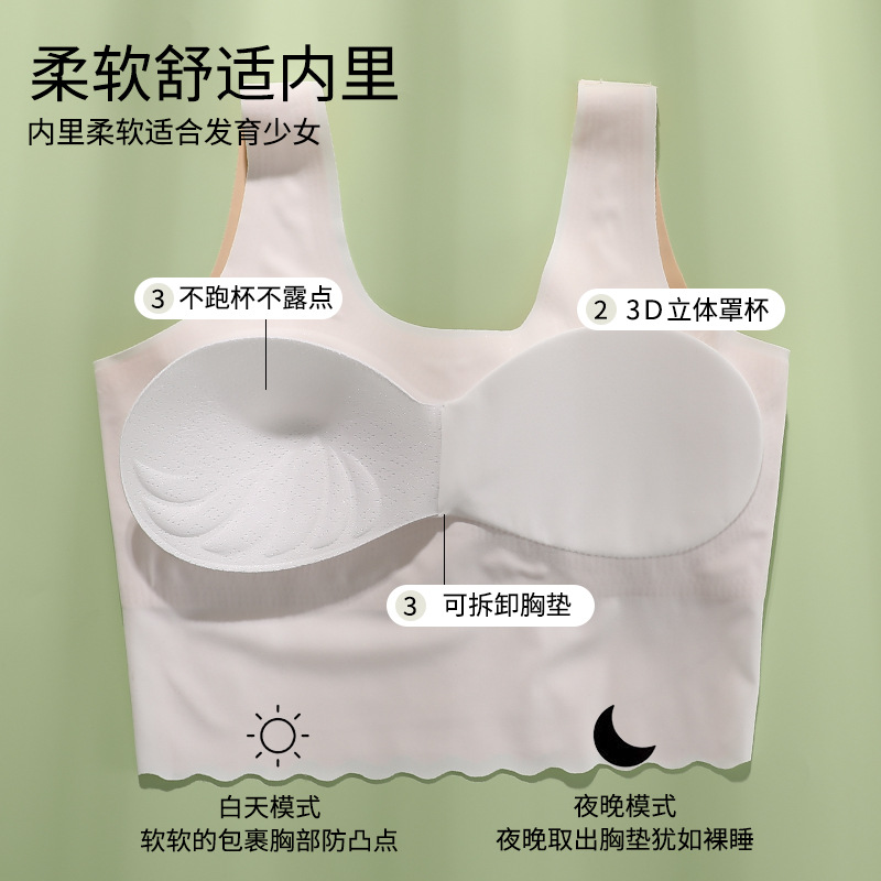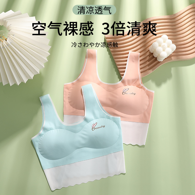 Развивающий нижнее белье из ледяного шелка для девочек, бесследное обернутое на груди, нижнее белье для учащихся средней школы, жилет-майка, летний легкий топ с защитой от ходьбы