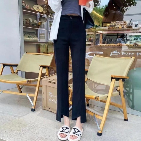2024 Летние Новые Нерегулярные Укороченные Брюки костюмные брюки с высокой талией стройнящие маленькие тонкие повседневные брюки с разрезом для женщин