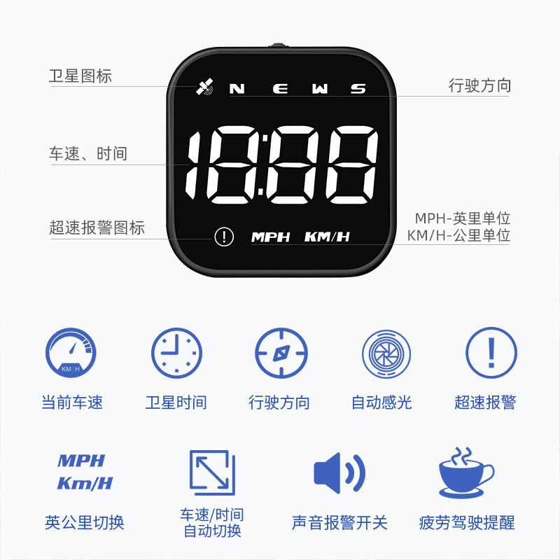 车载HUD抬头显示器汽车GPS通用多功能测速仪指南针高清智能显示屏