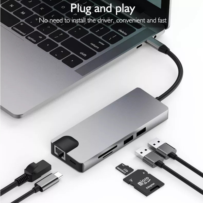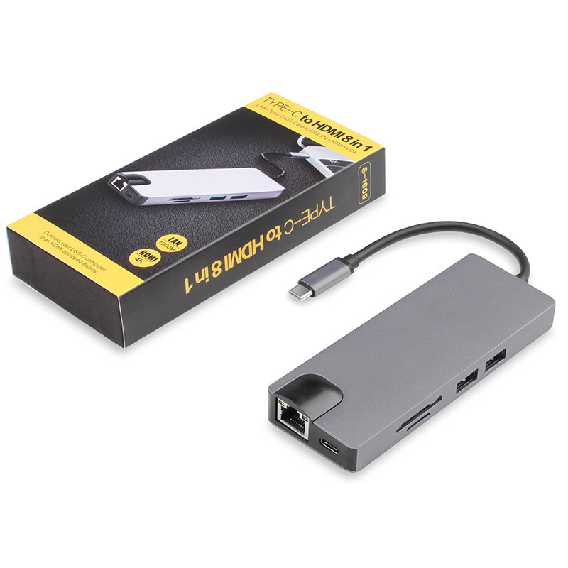 Многофункциональная док-станция 0031, концентратор для компьютера VGA RJ45, гигабитный сетевой порт, док-станция типа C, восемь в одном