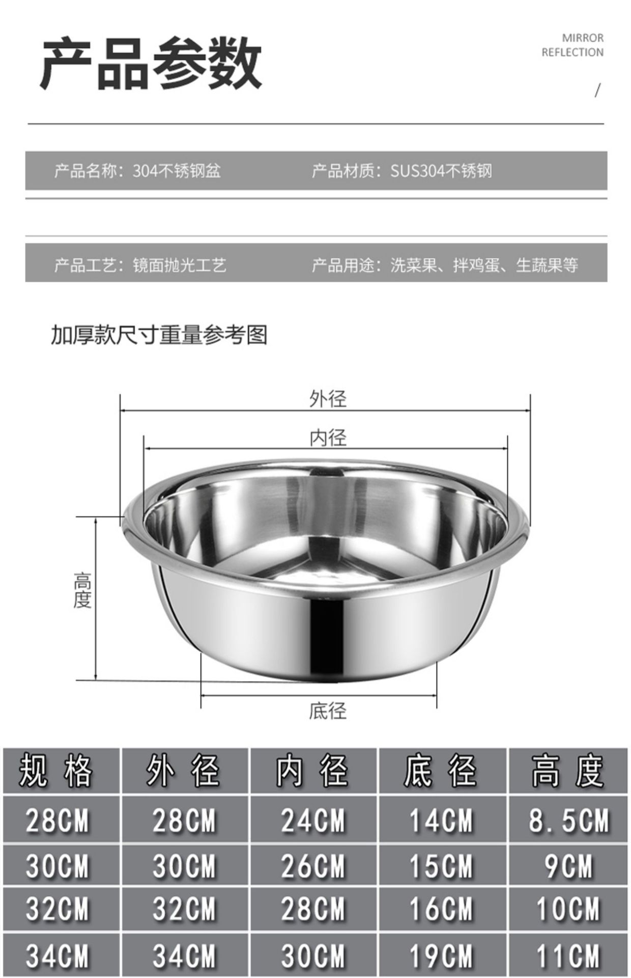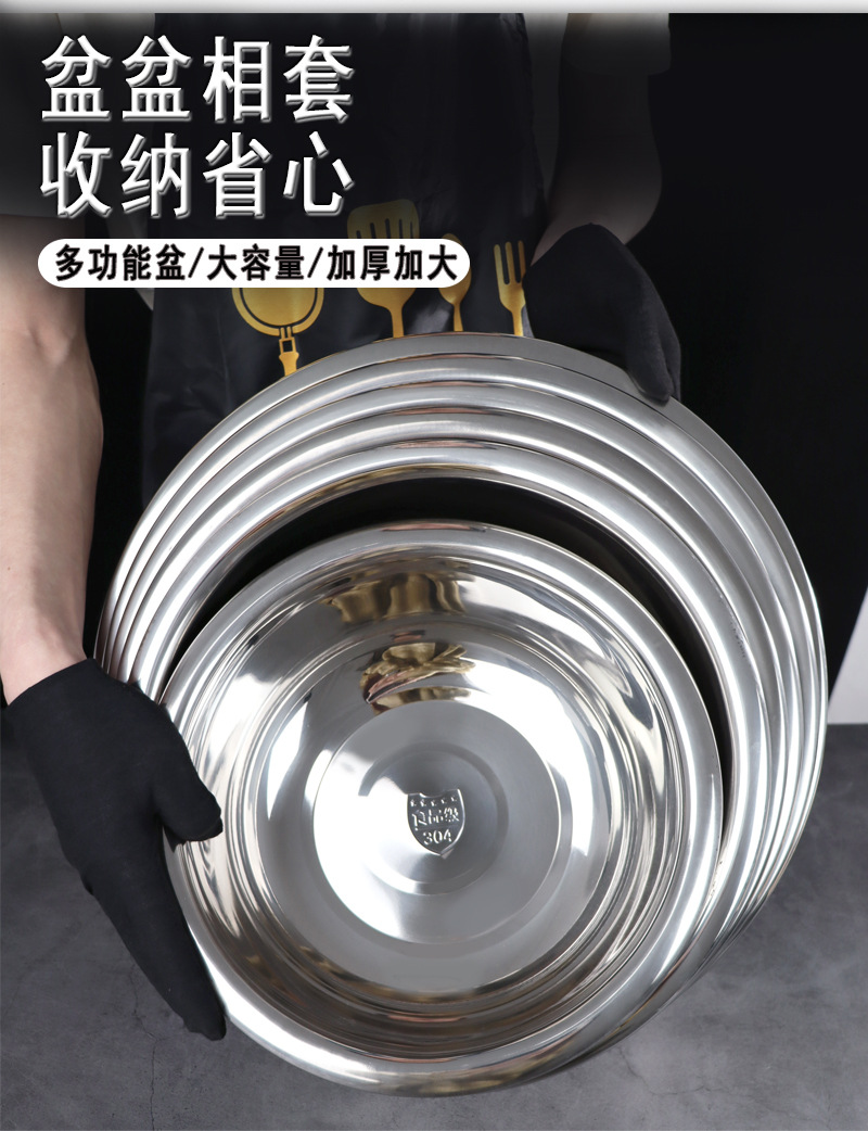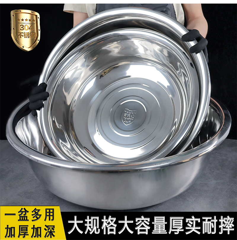 Очень Большой Таз из нержавеющей стали Коммерческий умывальник для овощей Круглый таз 304 Пищевой и тазик Большой умывальник Раковина для белья