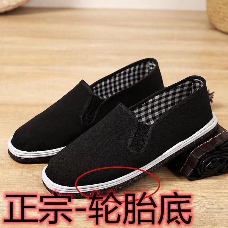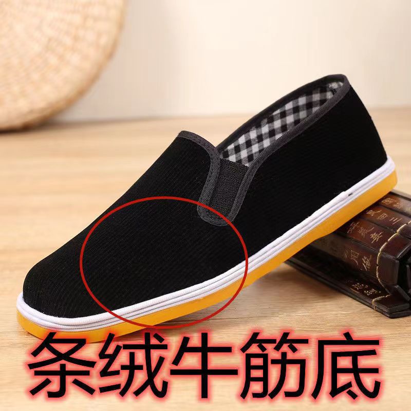 Дышащие летние парусиновые туфли, старинные пекинские тканевые туфли, повседневные туфли с круглым носком и подошвой из коровьего сухожилия, мужские черные тканевые туфли с мягкой многослойной подошвой.
