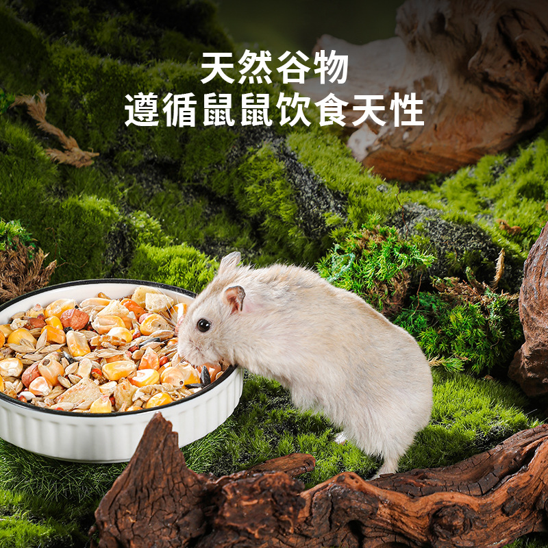 主要原料:蔬菜干 香蕉片 胡萝卜干 苹果干 菠萝干 大枣片 葡萄干 红皮小花生 薏米仁 燕麦片 小麦片 大麦 小麦仁 绿豆 紫薯干等 食用方法:每日喂食10-15克为宜,为 保证营养均衡吸收,建议每天投食适量 避免浪费,喂食时请保证干净新鲜的饮 水供给。