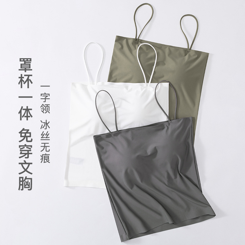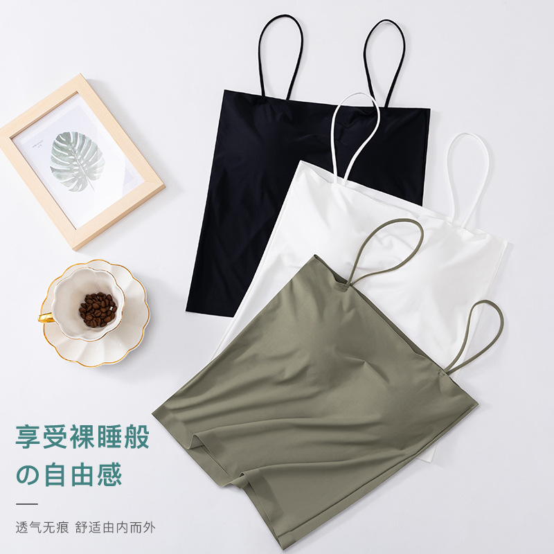 Женская внутренняя одежда из ледяного шелка с подкладкой для груди Верхняя одежда Тонкий плечевой ремень База Плечо Соберите бесшовную красивую накидку на спину