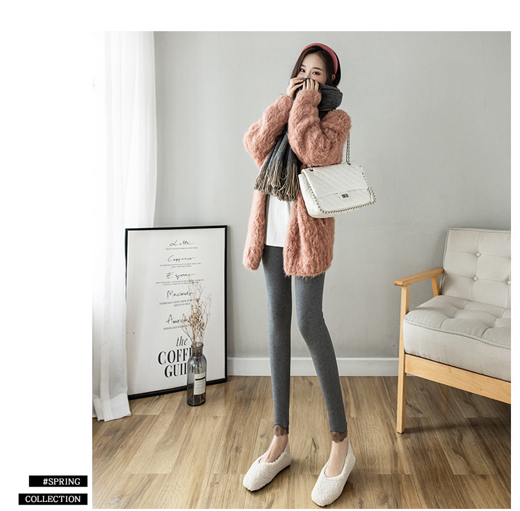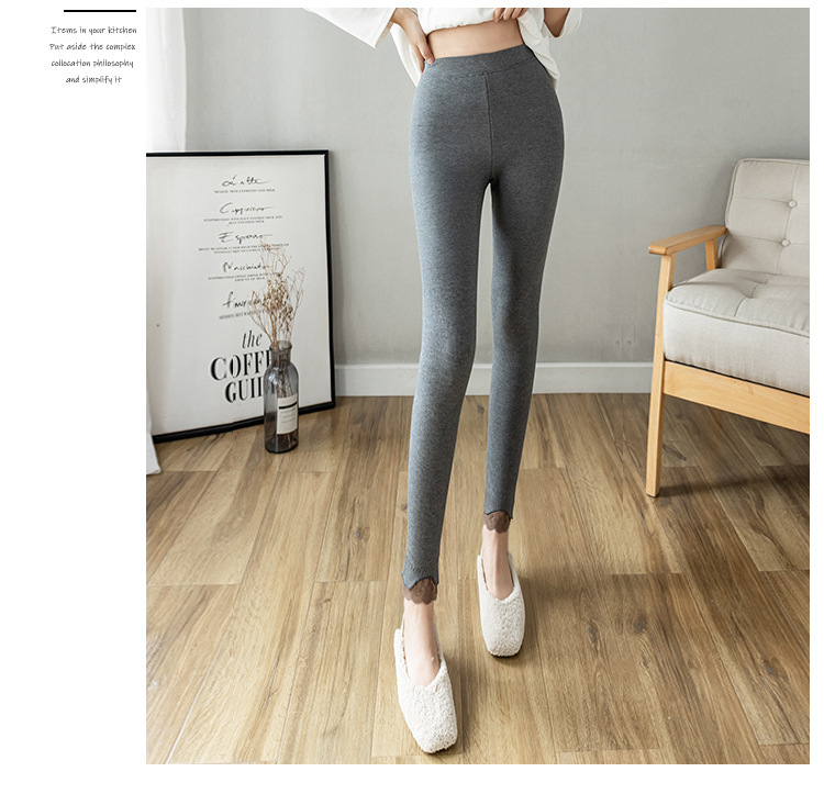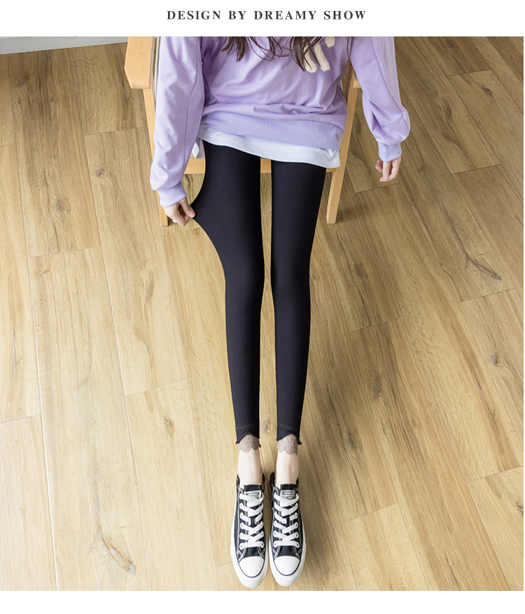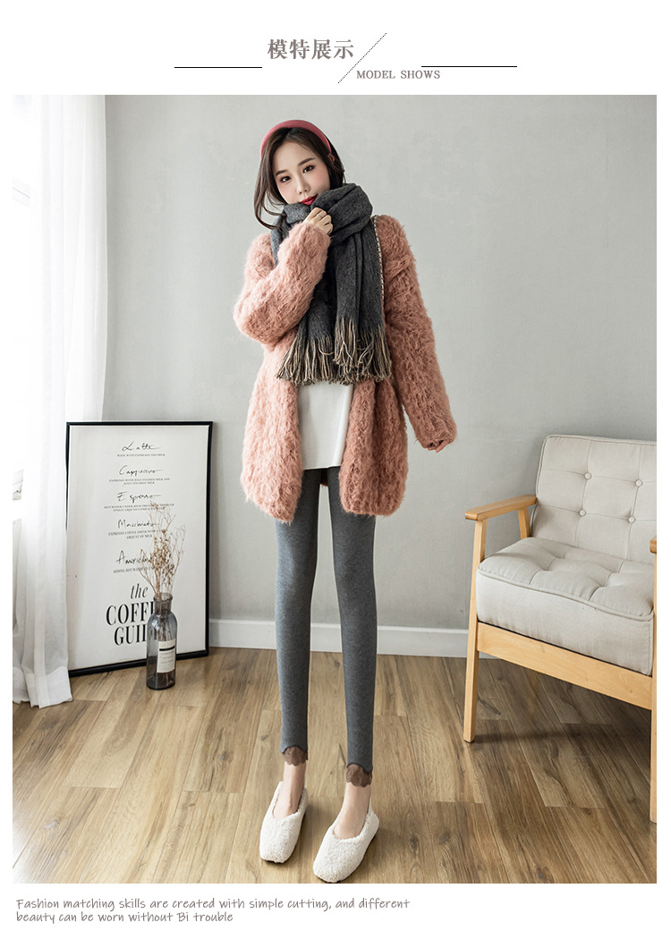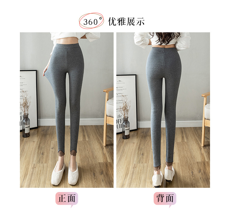 Леггинсы из овечьей шерсти для женщин, осенняя верхняя одежда, кружевные колготки, зимние теплые укороченные брюки большого размера 100kg для ношения на улице.