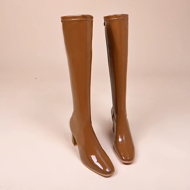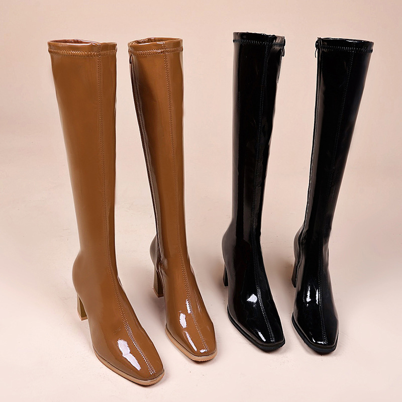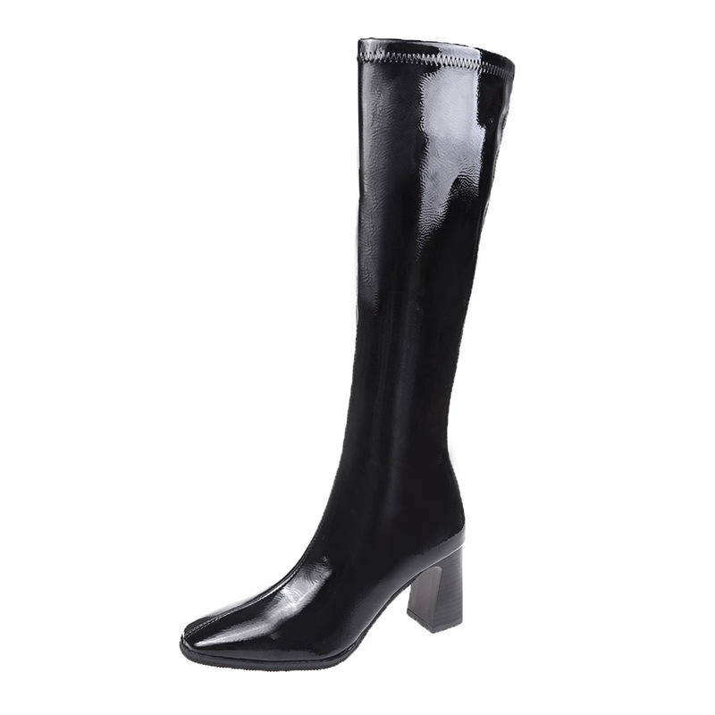 Яркие рыцарские сапоги на высоком каблуке на толстом каблуке для женщин осень-зима 2022 Новые темпераментные сапоги на высоком каблуке с квадратной головкой в наличии оптом