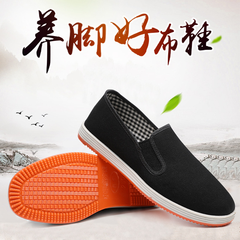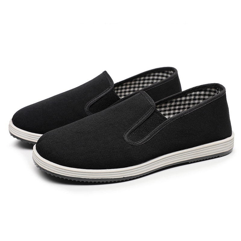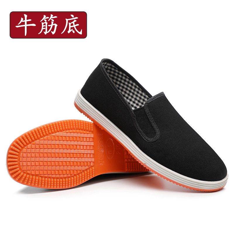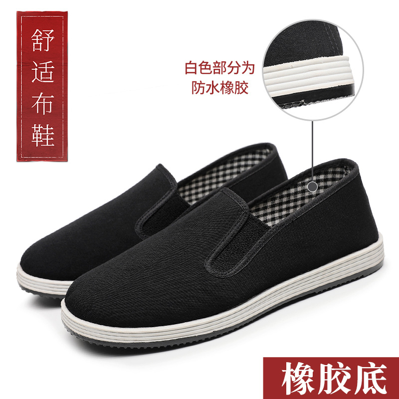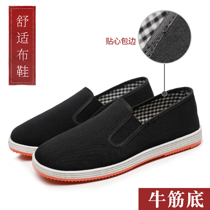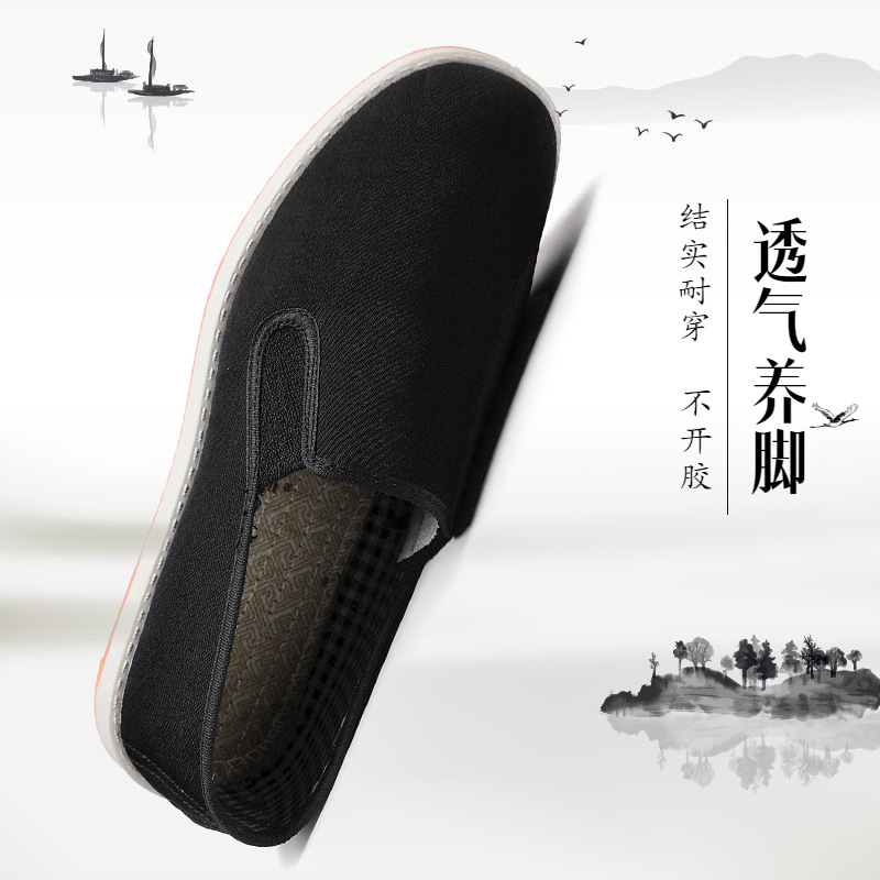 Old Beijing Старомодная прогулочная обувь с говяжьей подошвой, Мужская Уличная Нескользящая износостойкая дышащая повседневная обувь без шнуровки из черной ткани для людей среднего и пожилого возраста