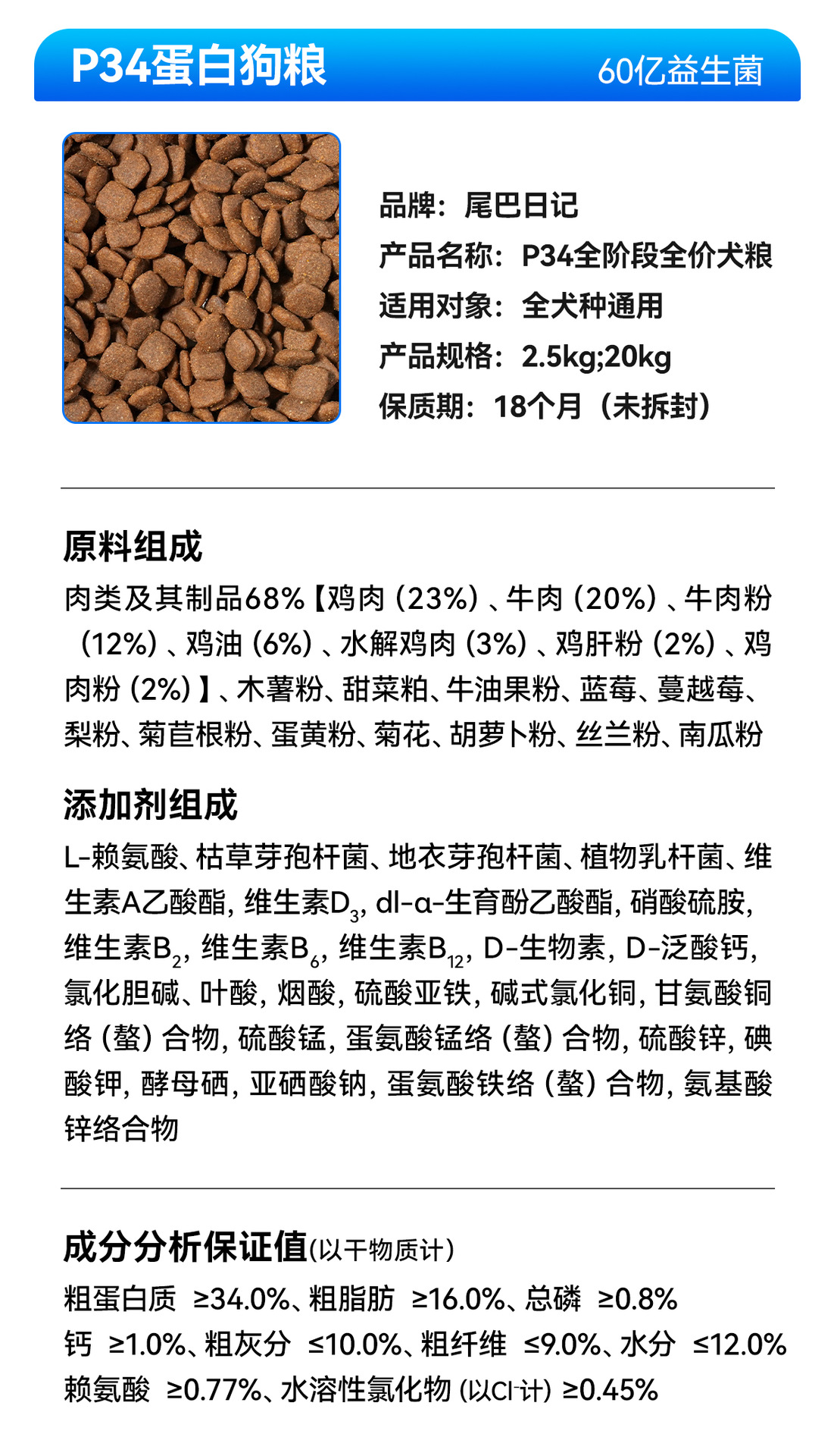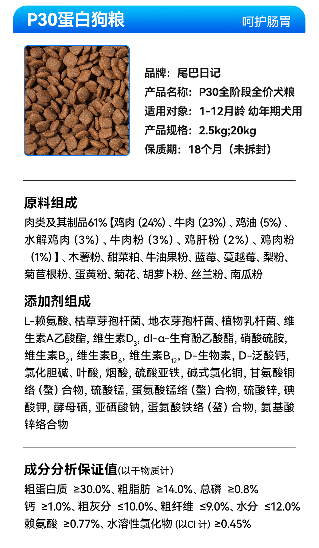 Свежее мясное корм для собак (пробиотики заботятся о кишечнике и желудке); Банкет из четырех частей (яичный желток оригинальной нарезки + сырое мясо и кости + куриная печень)); Juewei из трех частей (фризильдированная курица + яичный желток оригинальной нарезки); Пищевой корм для собак P22 Protein Complete (Stray Rescue); Специально для щенков P30 (пробиотики для защиты желудочно-кишечного тракта); Белок P34 свежего мяса без зерна (высокий уровень кальция и крепкие кости); Протеиновый корм для щенков P36 (беззерновой и гипоаллергенный); P38 Беззерновой корм для собак с фреш-мясом (высокое содержание мяса для набора веса и развития мышечной массы)