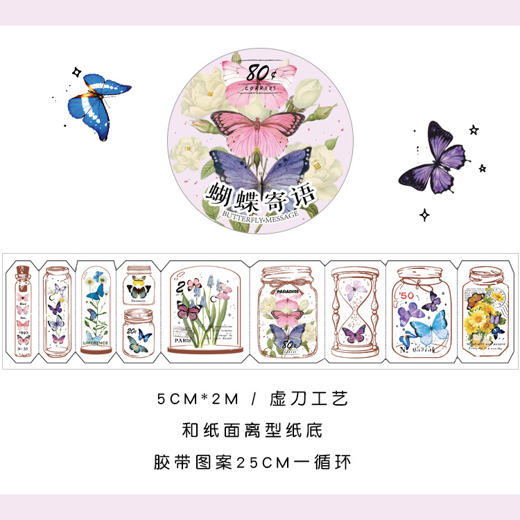 Язык холостого хода естественный Предисловие серия виртуальный нож и бумажная лента ретро завод бабочка ручной счет материал релиз наклейки 6