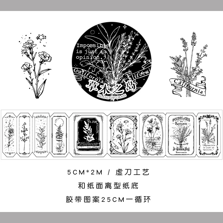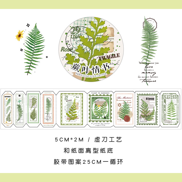 Остров растительности 5 см * 2 м; Бабочка Послание 5 см * 2 м; Лист папоротника Любовное письмо 5 см * 2 м; Сад мечты 5 см * 2 м; Грибная усадьба 5 см * 2 м; Звездопад Лес 5 см * 2 м