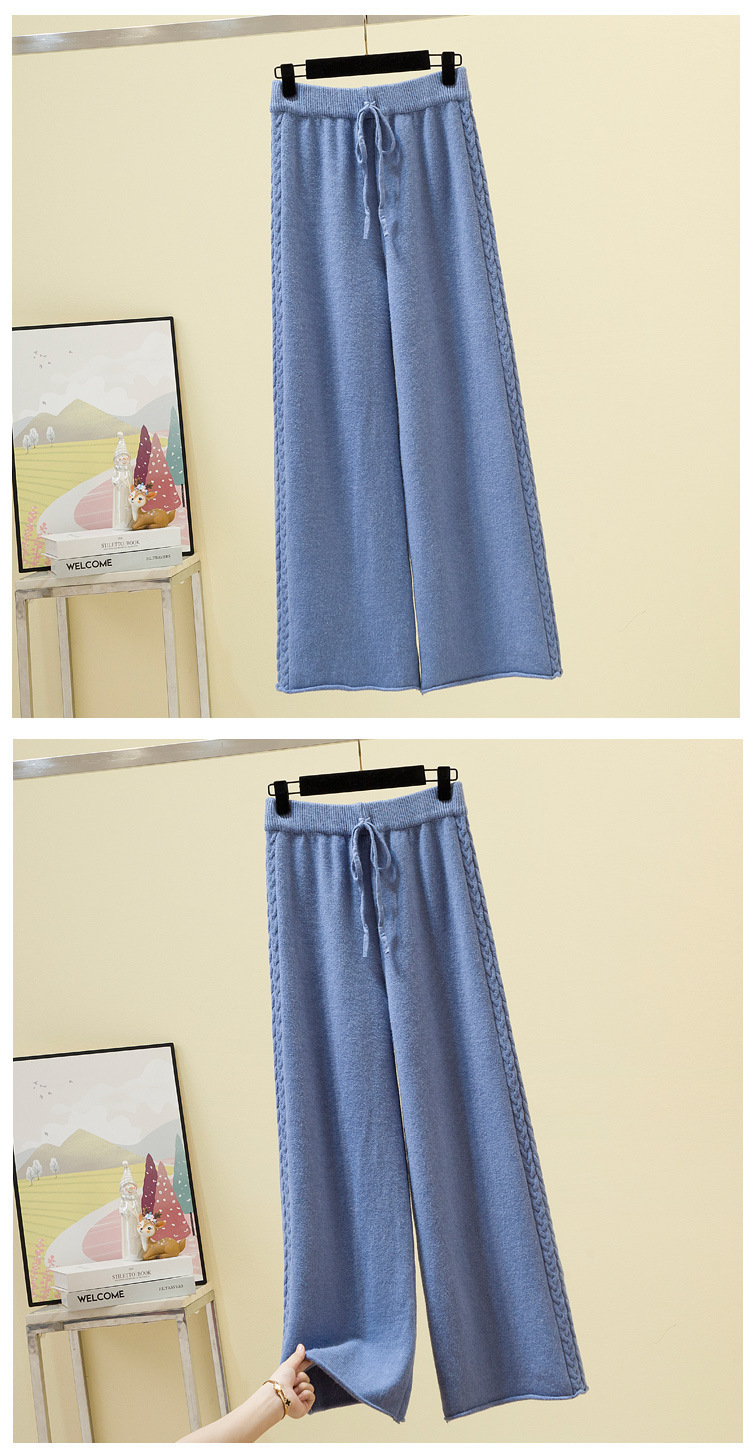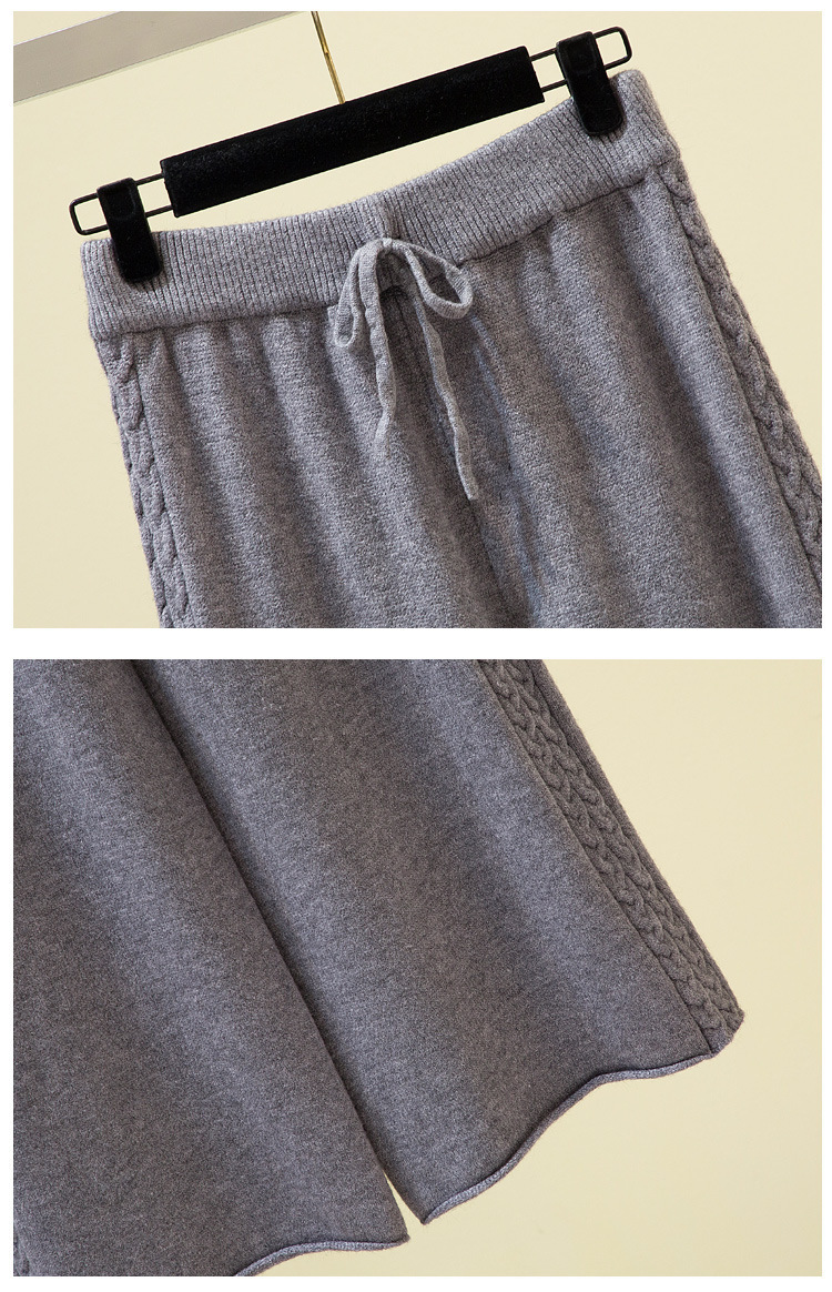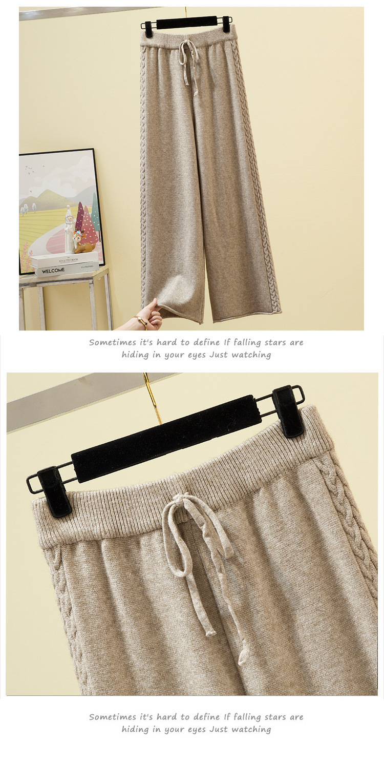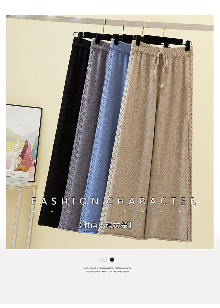 Осенние и зимние трансграничные новые свободные женские широкие брюки толстая девушка ретро свободные прямые трикотажные женские широкие брюки с высокой талией