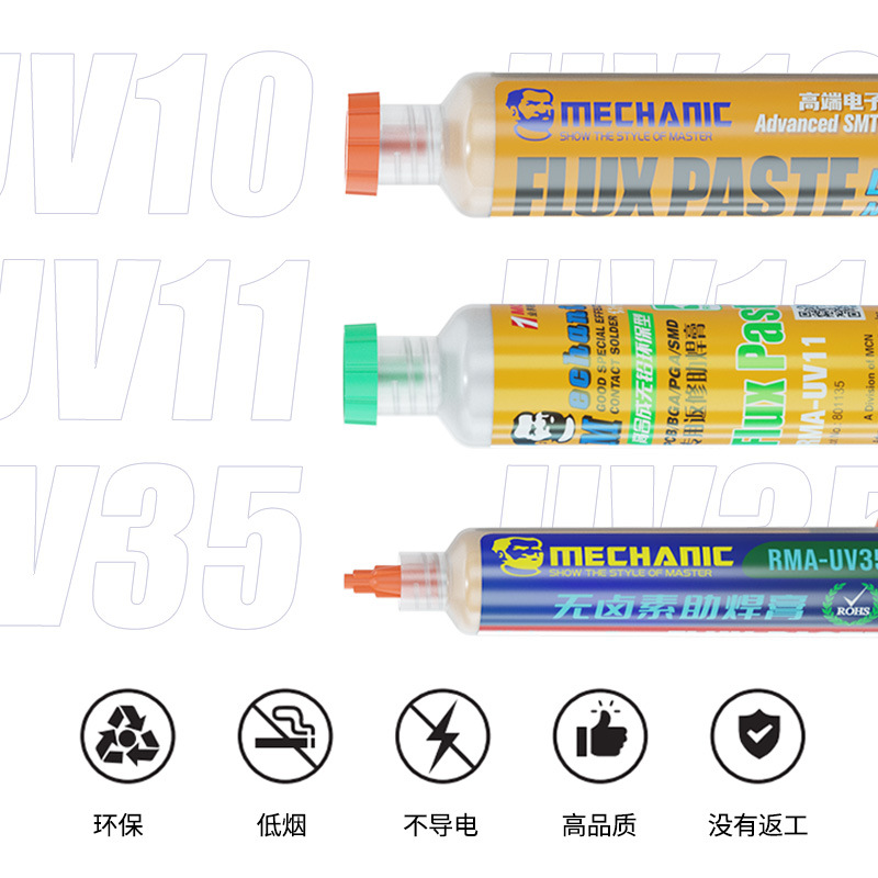 Техническое обслуживание Защита окружающей среды бессвинцовый флюс без галогенов УФ-паяльная паста UV80/MCN-UV11/UV35 без очистки паяльная паста
