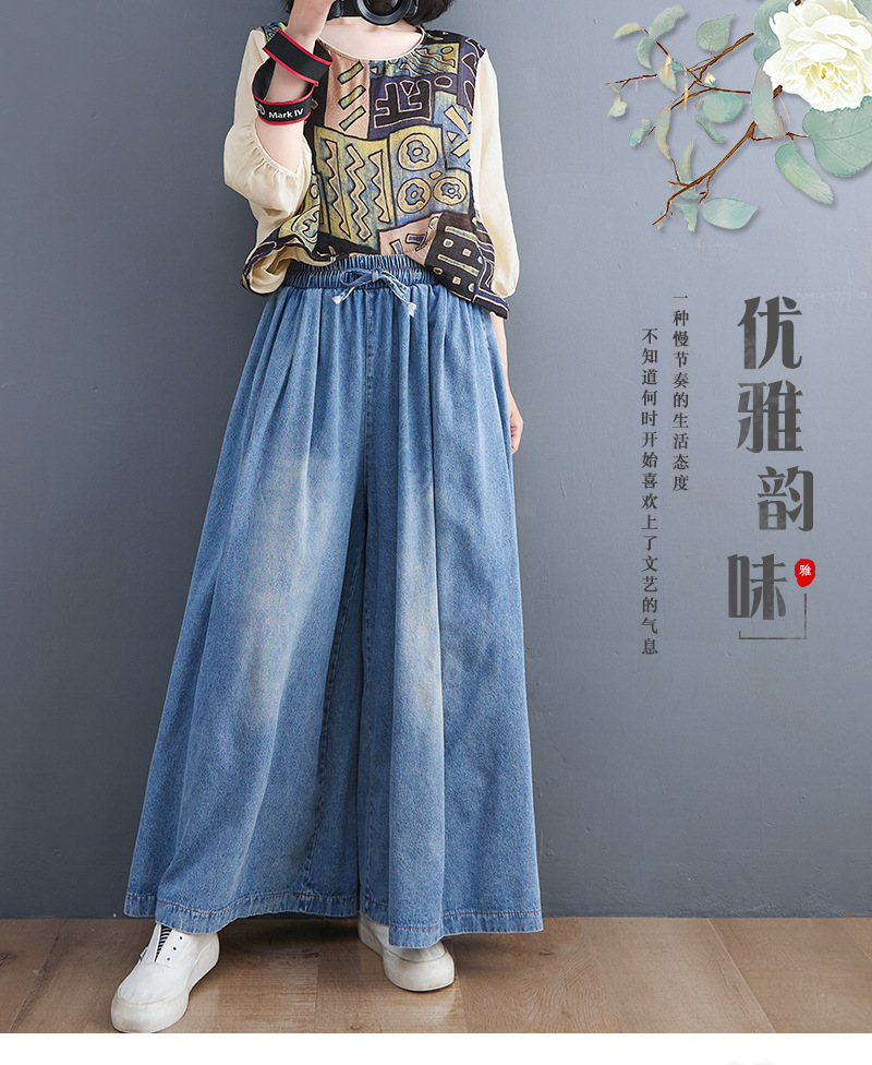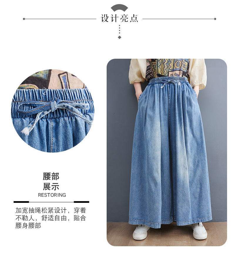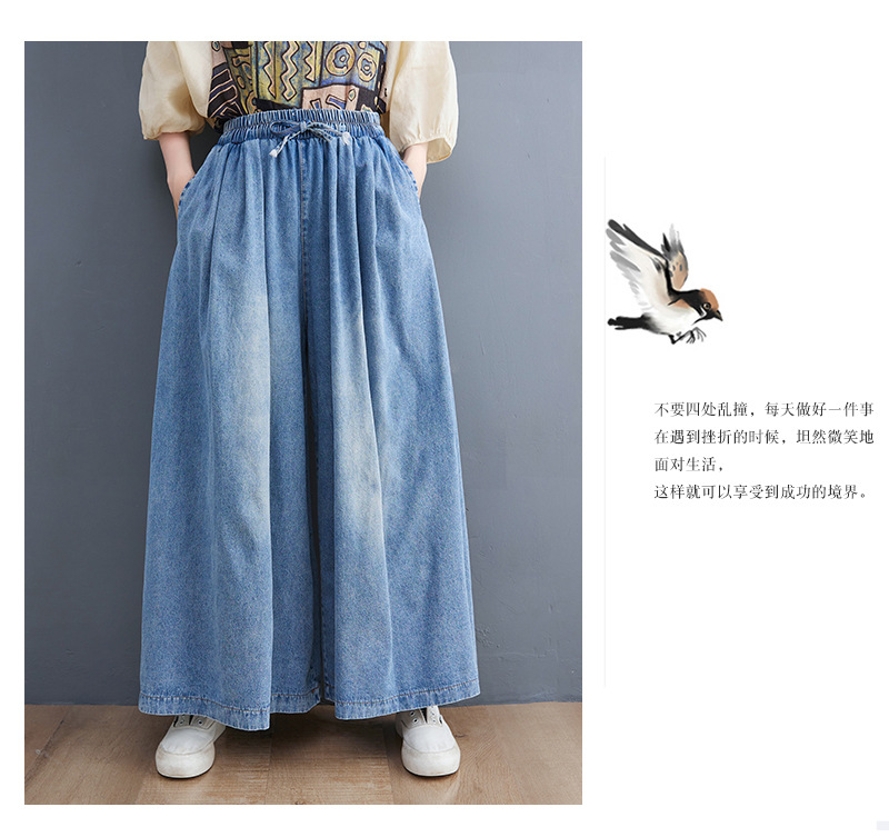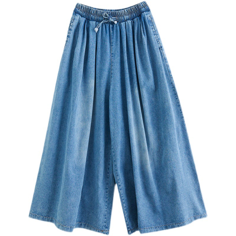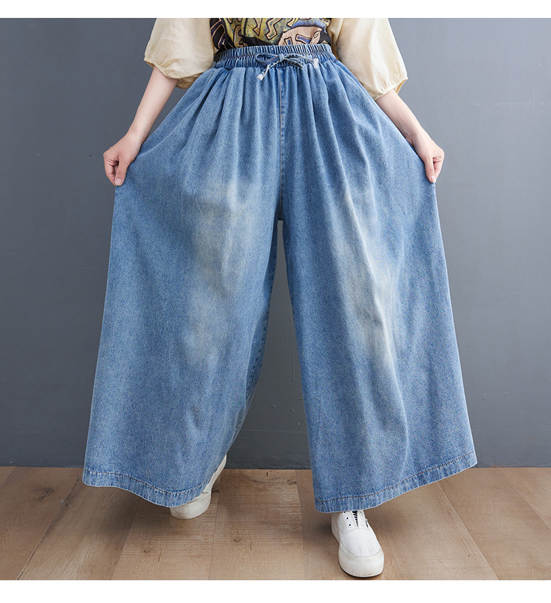 Реальный снимок в наличии, новый стиль, джинсы с широкими штанинами, винтажные свободные брюки на шнуровке больших размеров с эластичной талией, трендовая юбка
