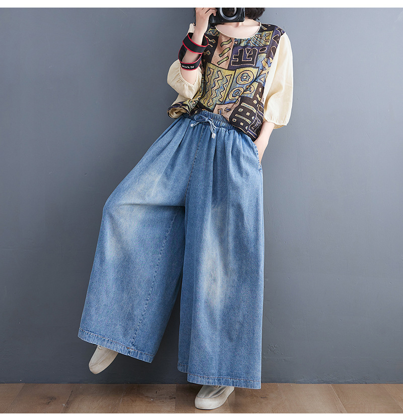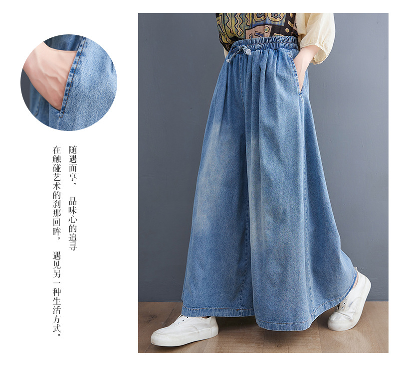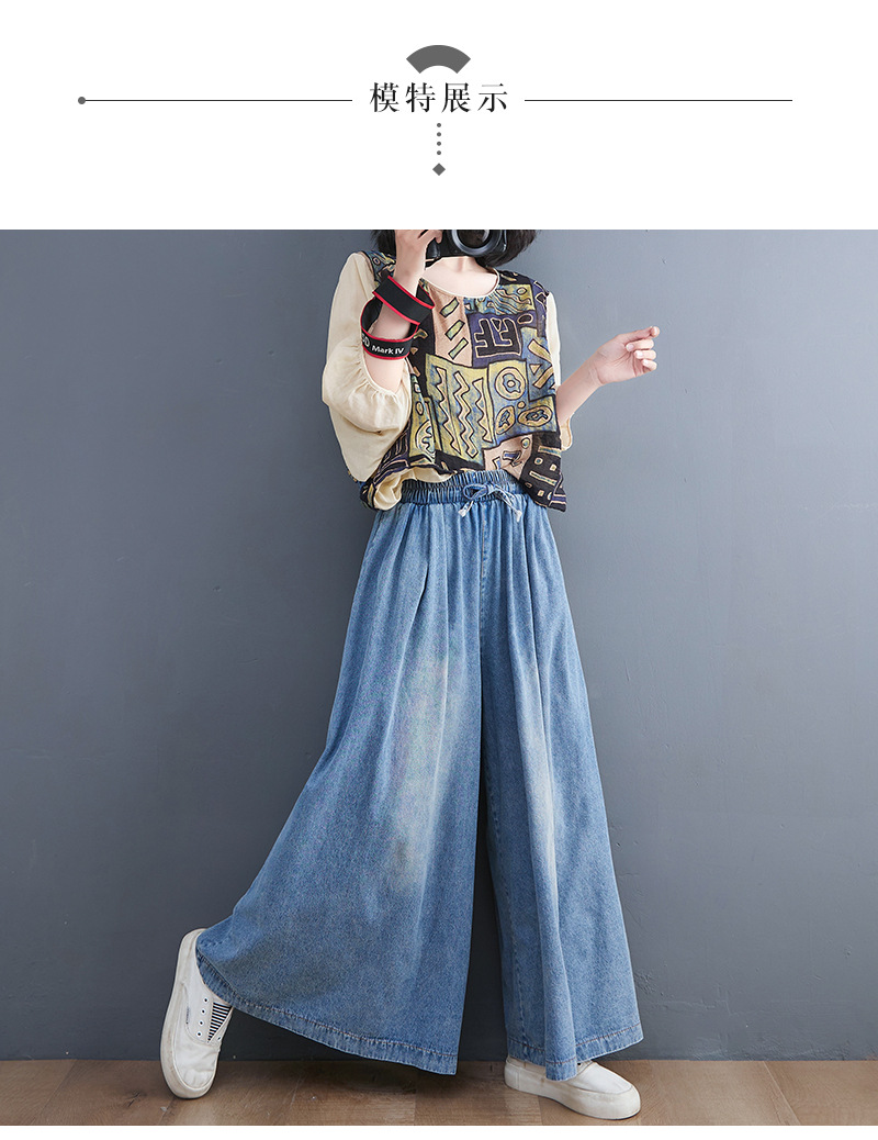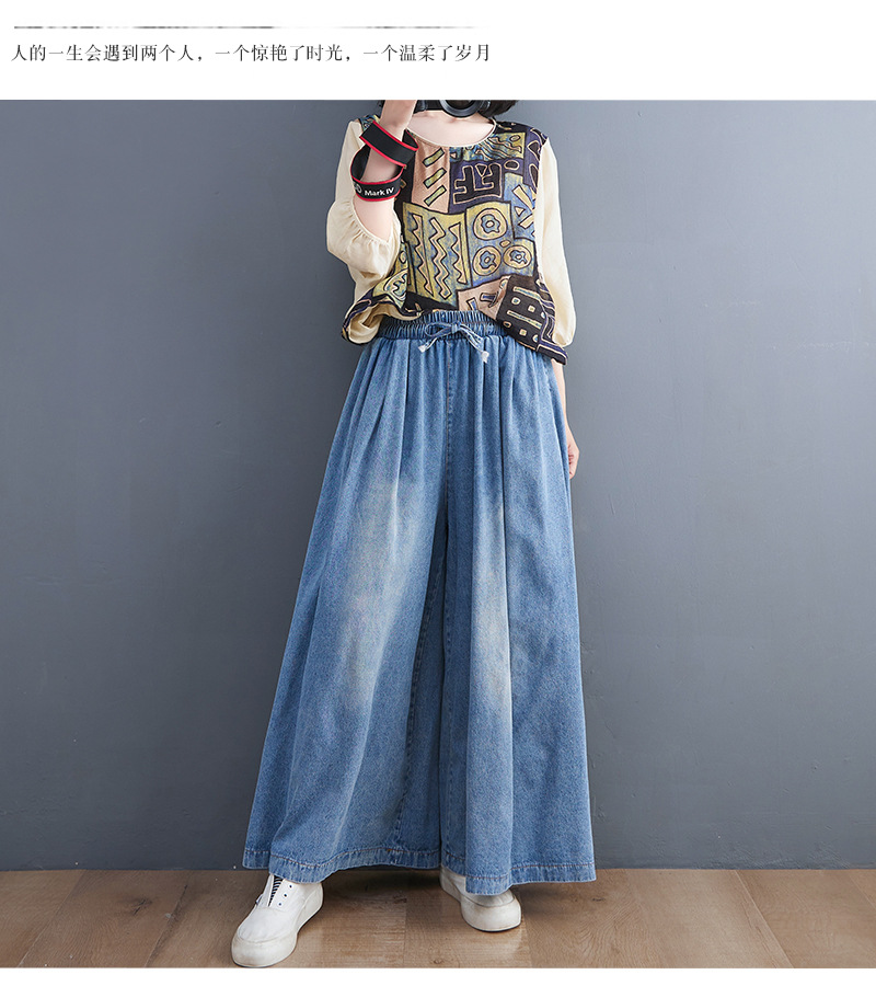 Реальный снимок в наличии, новый стиль, джинсы с широкими штанинами, винтажные свободные брюки на шнуровке больших размеров с эластичной талией, трендовая юбка