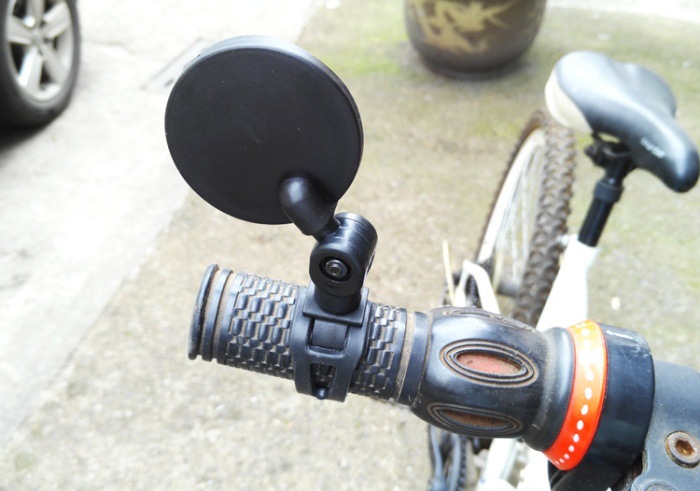 自行车自主固定式简易反光镜,直接安装在各类自行车车把或者副把上,不用另加其他附件;有些装上后,骑行时身体或手臂可能会挡住视线,要看时就需要晃动下车头,用以调整镜子角度
