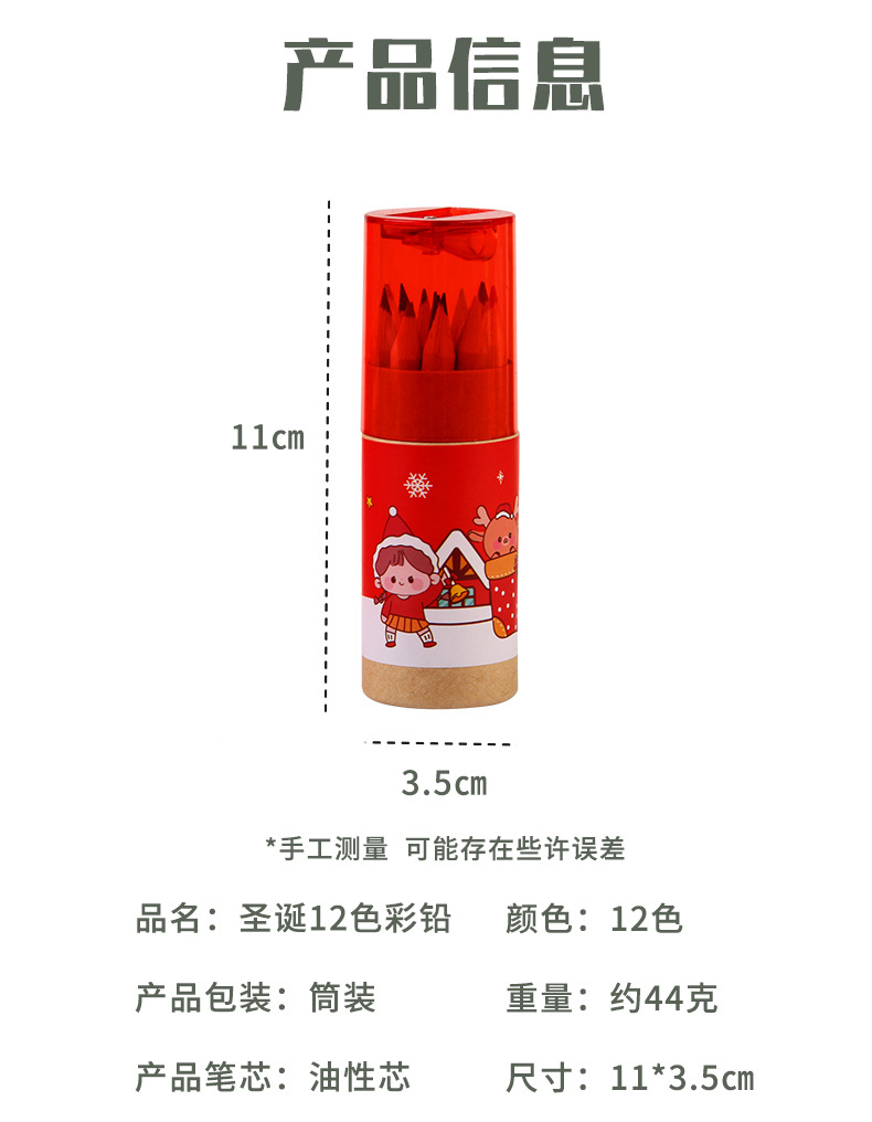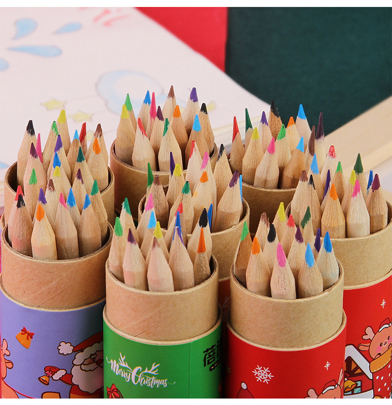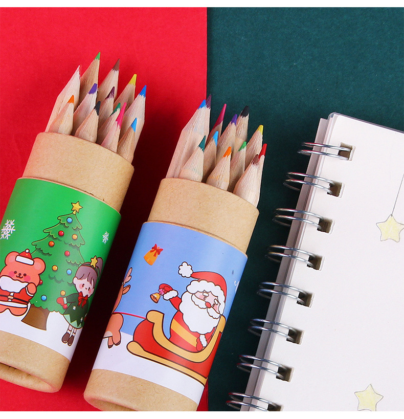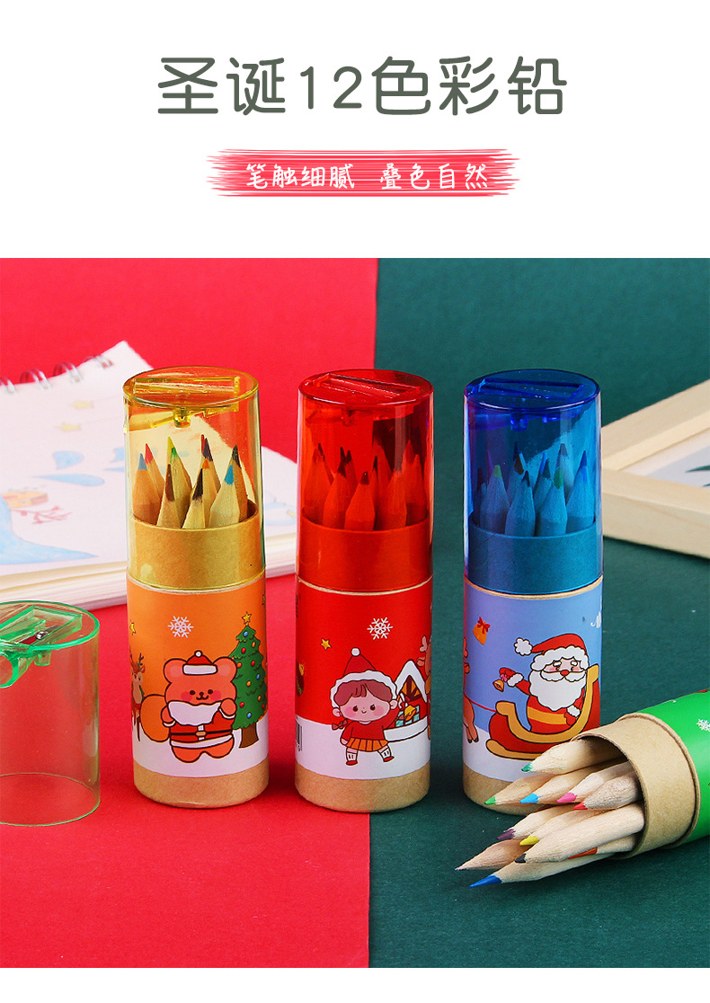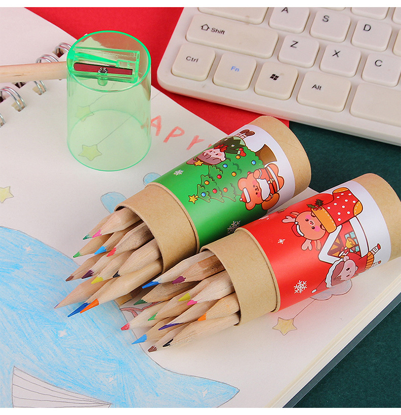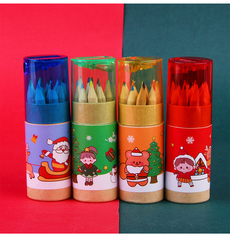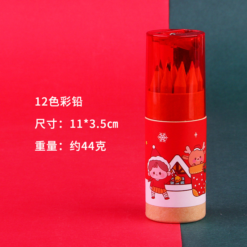 Цилиндрический цветной карандаш костюм мультфильм Рождество 12 цветов свинец ученики начальной школы рисунок карандаш Рождественский подарок оптом