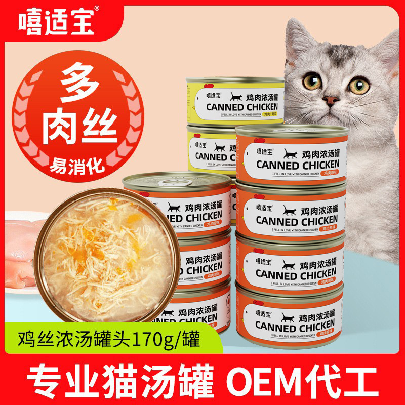 Xishibao кошачий консервированный куриный суп, банка для кошачьих закусок, питательное увлажнение, 170 г, котенок, свежее мясо, скобы, еда, оптовая продажа