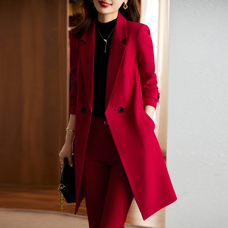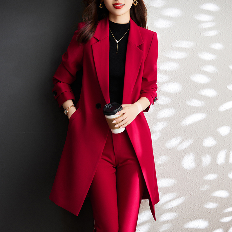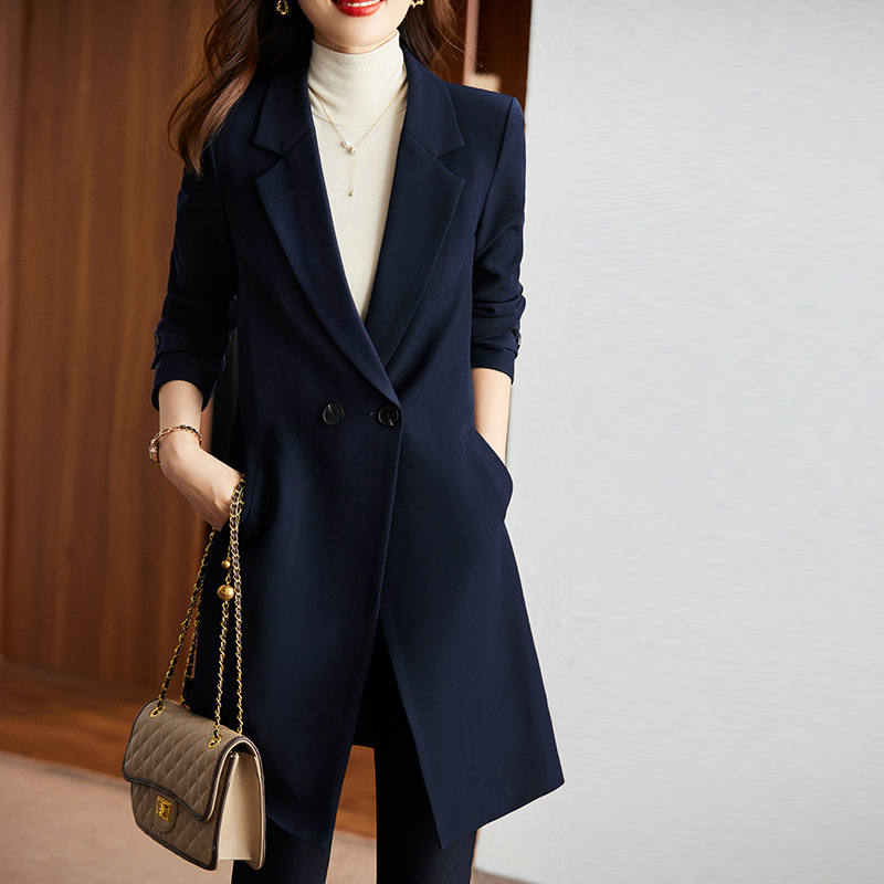 Длинная ветровка, Женская осенне-зимняя новая деловая одежда, костюм с длинным рукавом, маленький костюм, модный элегантный инструмент с белым воротником