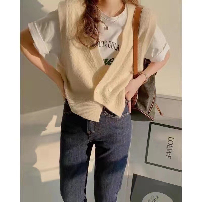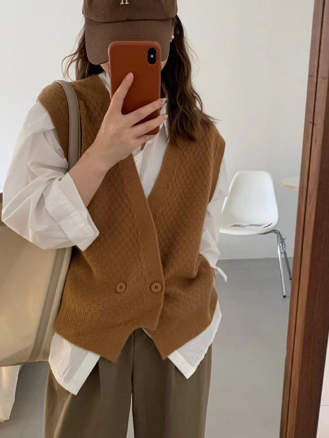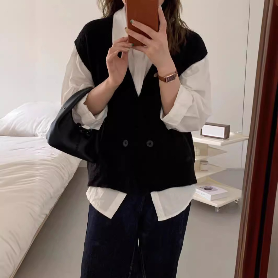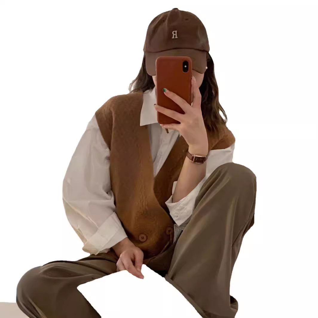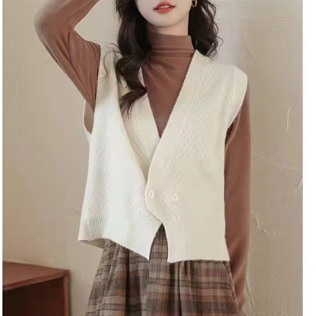 Нерегулярный вязаный жилет Пальто Женский осенний Простой Элегантный женский жилет Наборный японский свитер без рукавов