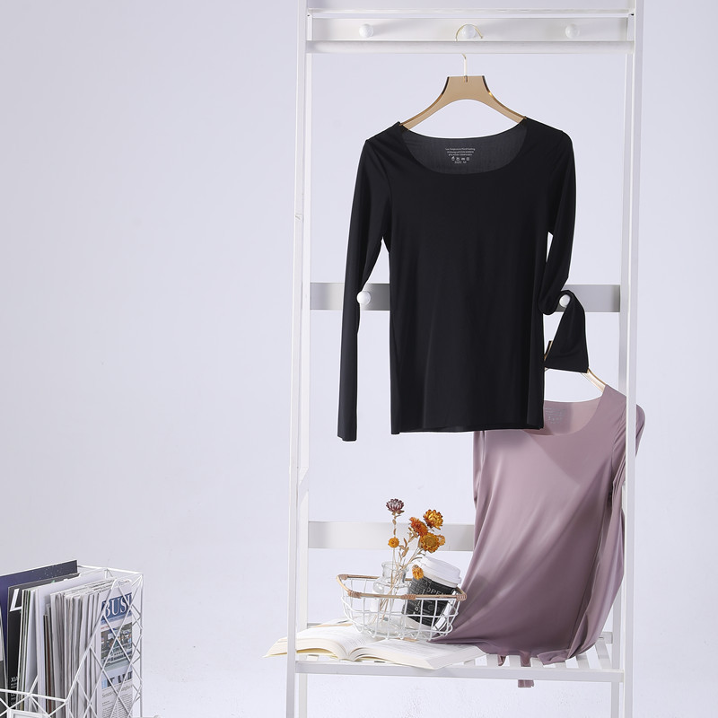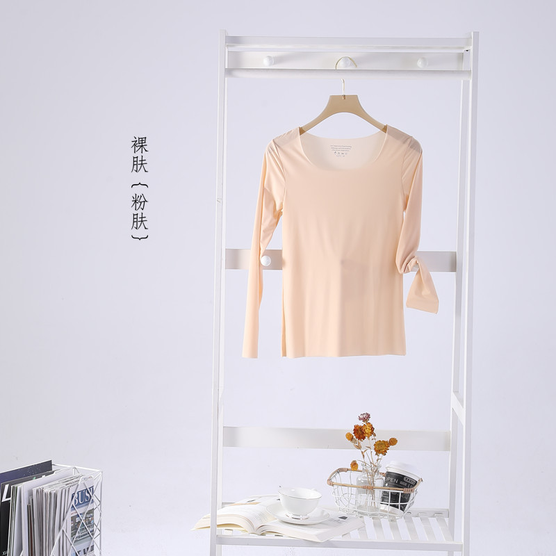 Бесшовная женская нижняя рубашка из ледяного шелка, нижнее белье, топ, ультратонкая Осенняя футболка с длинными рукавами, не проникающая внутренняя подкладка, весна и осень