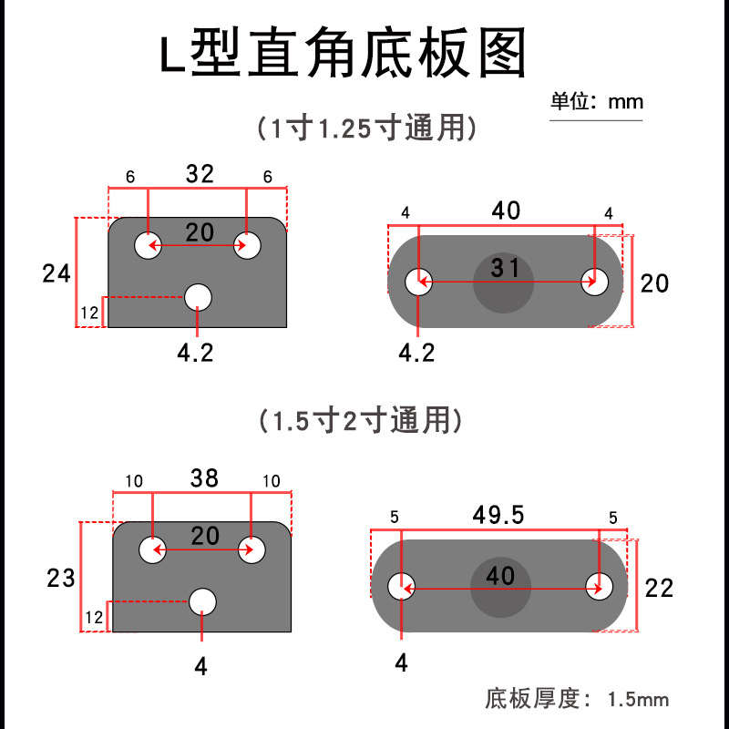 1 дюйм, 1,25 дюйма, 1,5 дюйма, 2 дюйма