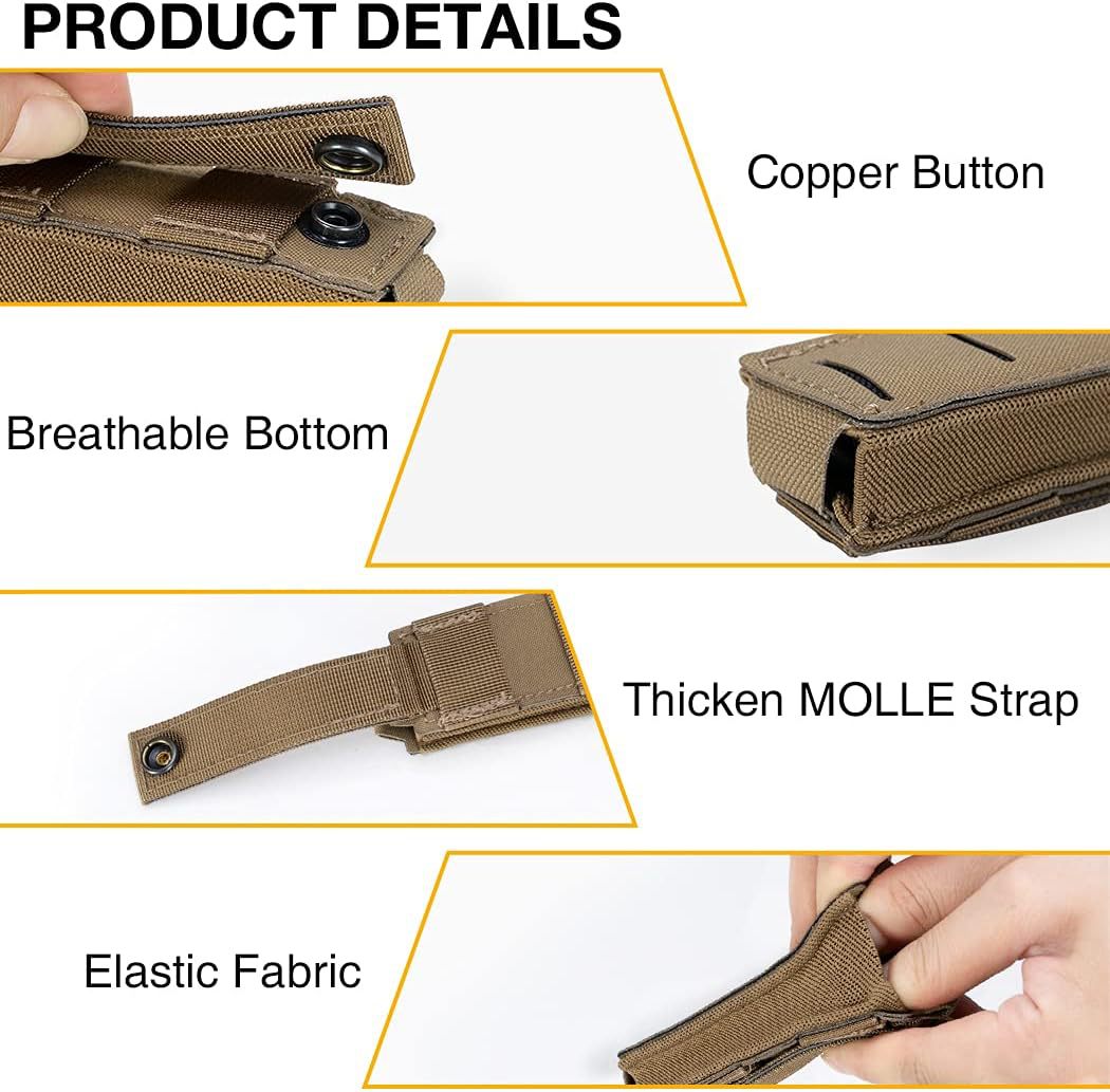 Single Pistol Mag Pouch Elastic Molle Top Open Pouch for M1911 92F 9mm .40 Magzines Flashlight Holster