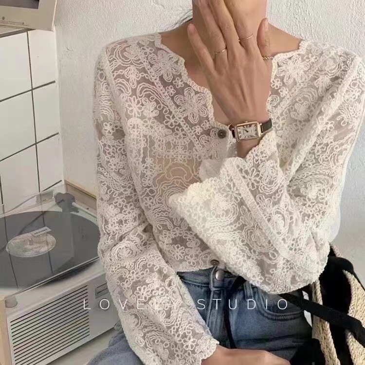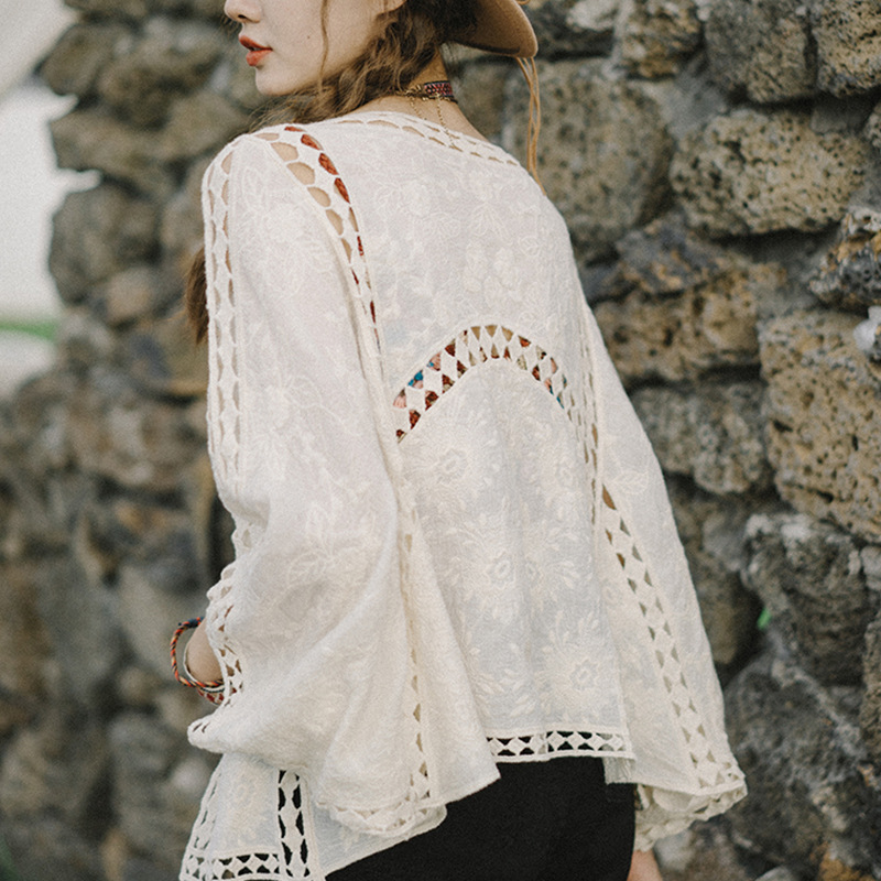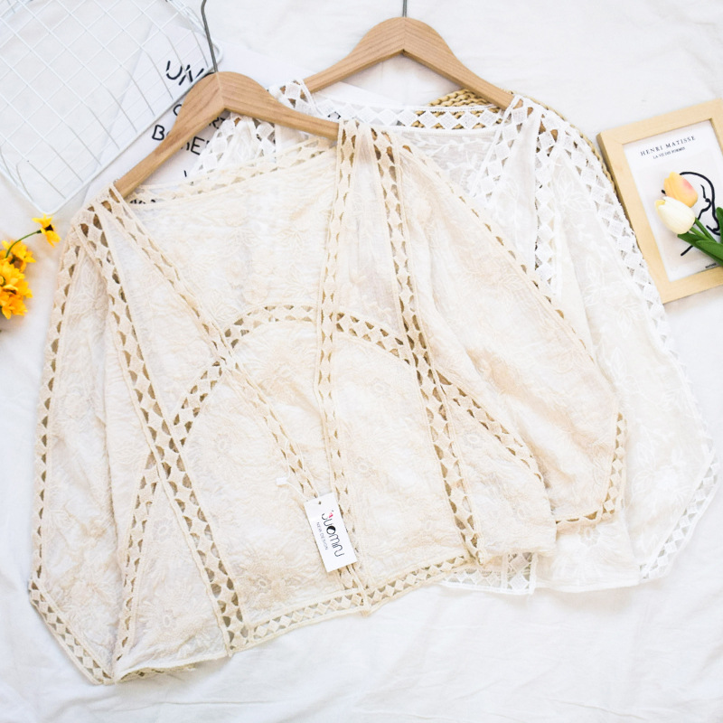 Винтажный вязаный крючком полый кардиган Simia Внешняя одежда для защиты от солнца Свободная пухлая сестра V-образным вырезом летучая ракета рукав пальто AL61