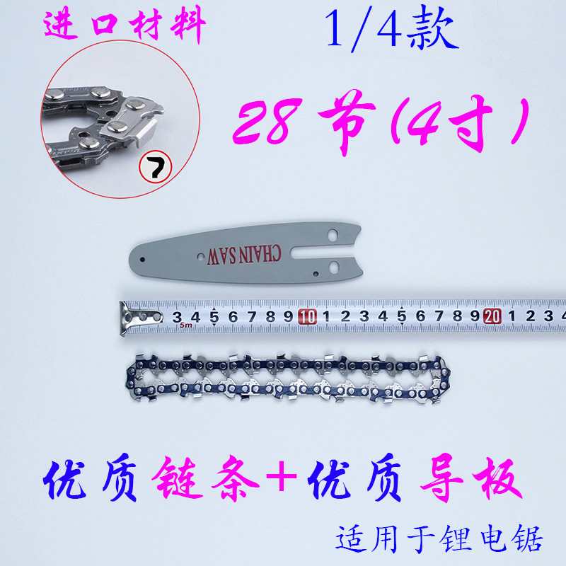 Цепь пилы с литиевым аккумулятором-4 дюйма-14 ножей-28 секций (обычная режущая головка); Цепь пилы с литиевым аккумулятором-4 дюйма-14 ножей-28 секций (усиленная режущая головка с гальваническим покрытием); 4 дюйма-направляющая пластина-(нормальная модель); 4 дюйма-направляющая пластина-(модель шарика направляющего колеса)
