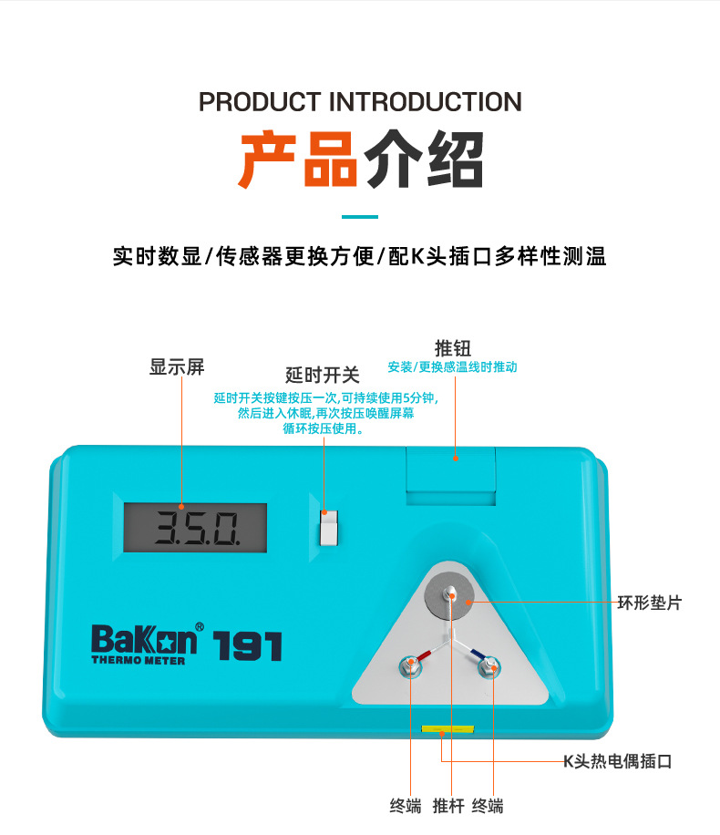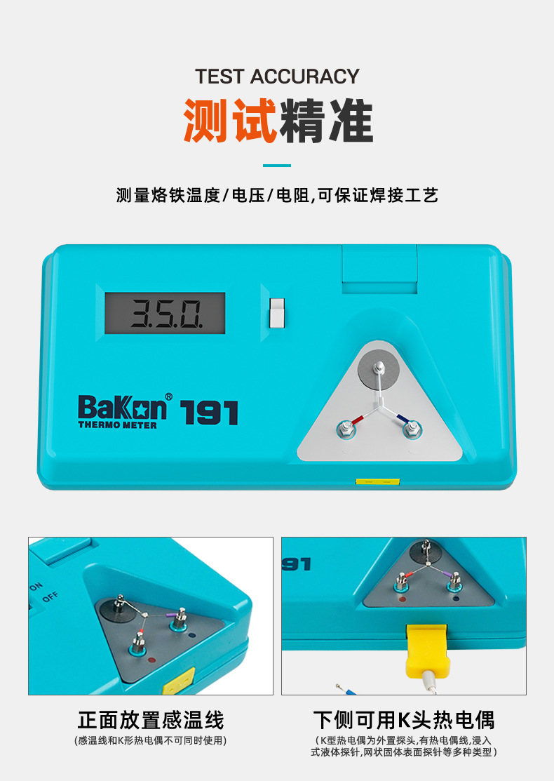 Bakon белый свет паяльник BK191 тестер температуры паяльная станция Тест температуры измерение Обнаружение промышленного измерения температуры