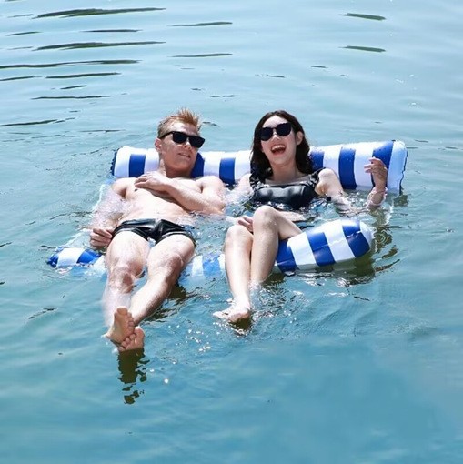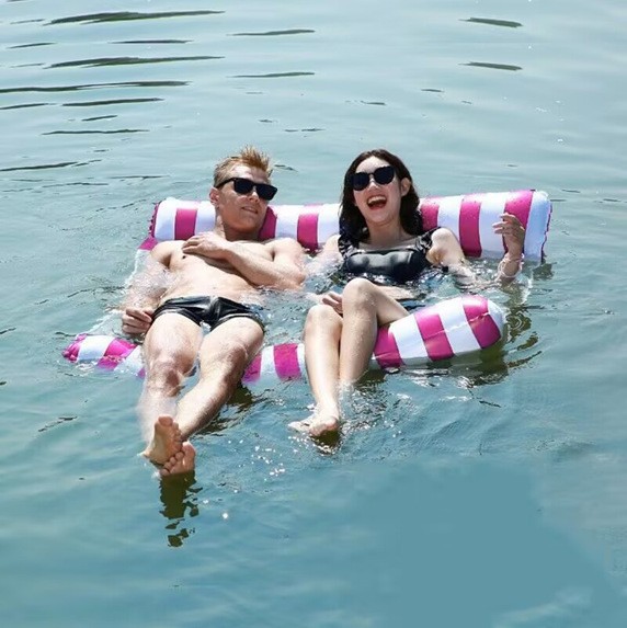 【跨境现货】新品充气带网吊床可折叠双用靠背浮排水上躺椅浮床沙发