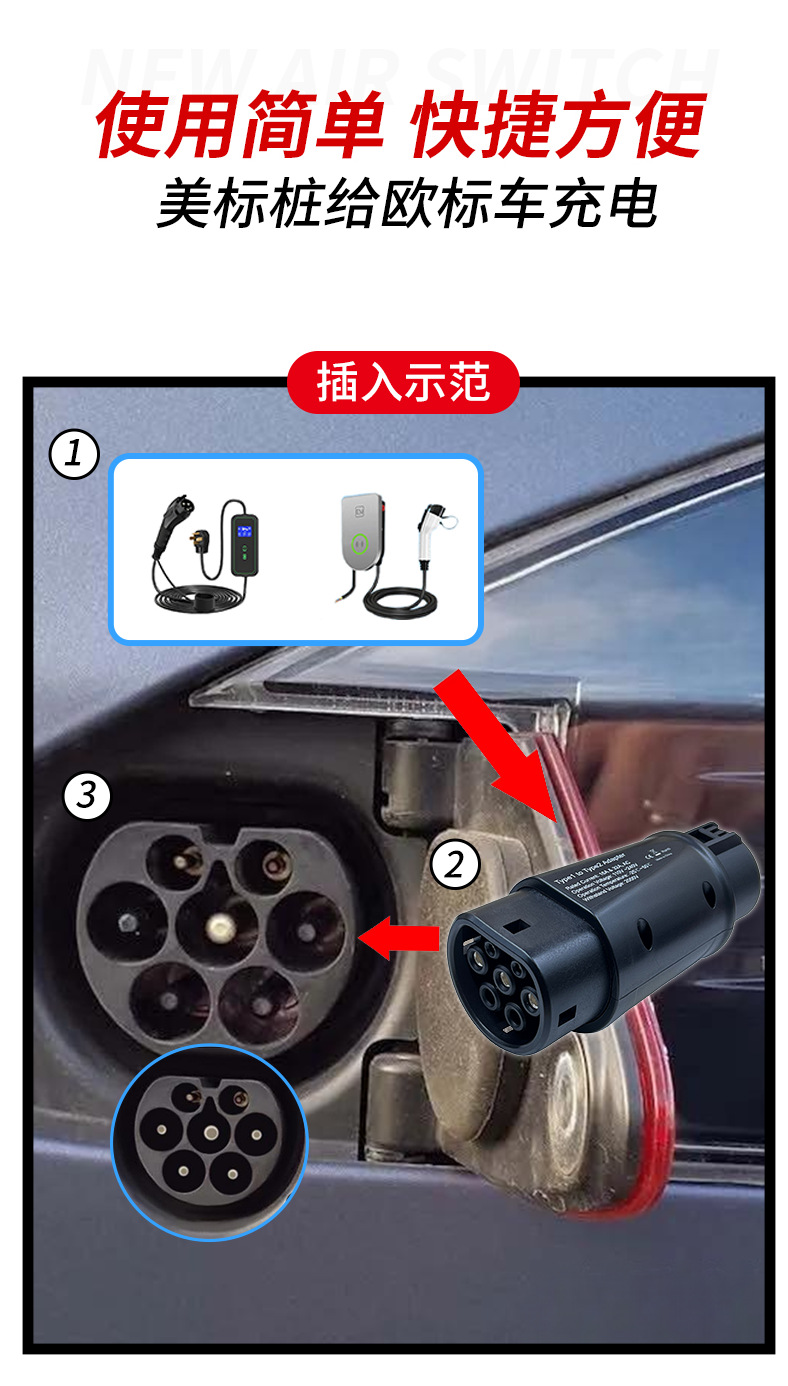 J1772 американская стандартная европейская стандартная автомобильная зарядная пушка адаптер type1 к type2 зарядная пушка конвертер