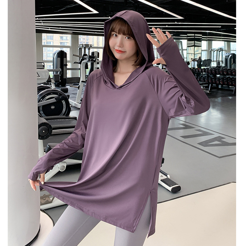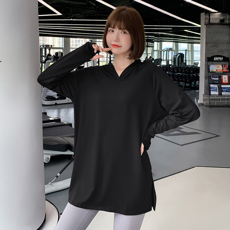 Одежда для йоги с капюшоном одежда для фитнеса весна и осень тонкая спортивная одежда больших размеров женская Свободная блузка для бега 200 кг