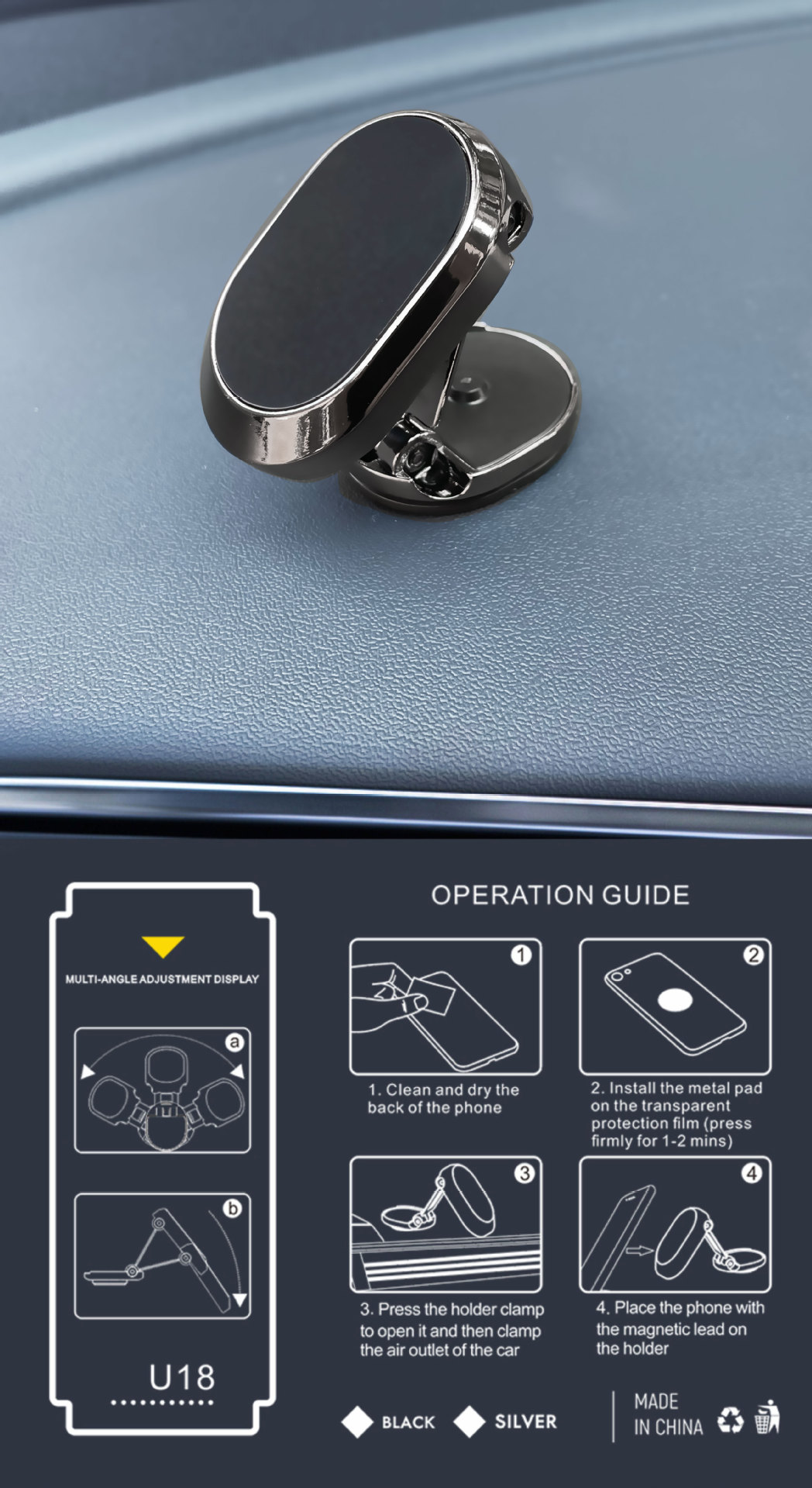 U18 [металлический складной магнитный кронштейн] элегантный черный; U18 [металлический складной магнитный кронштейн] Серебристый