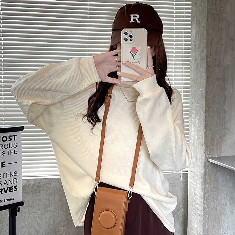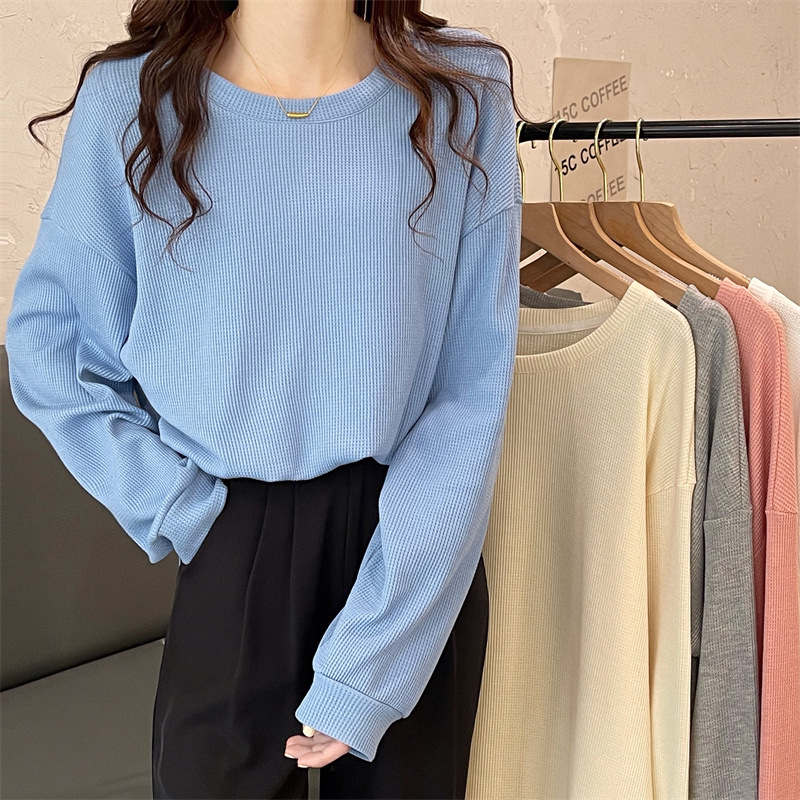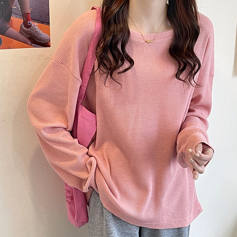 Уменьшение возраста свежее вафельное пальто с круглым вырезом женский сладкий и нежный ветер ленивый маленький топ женский