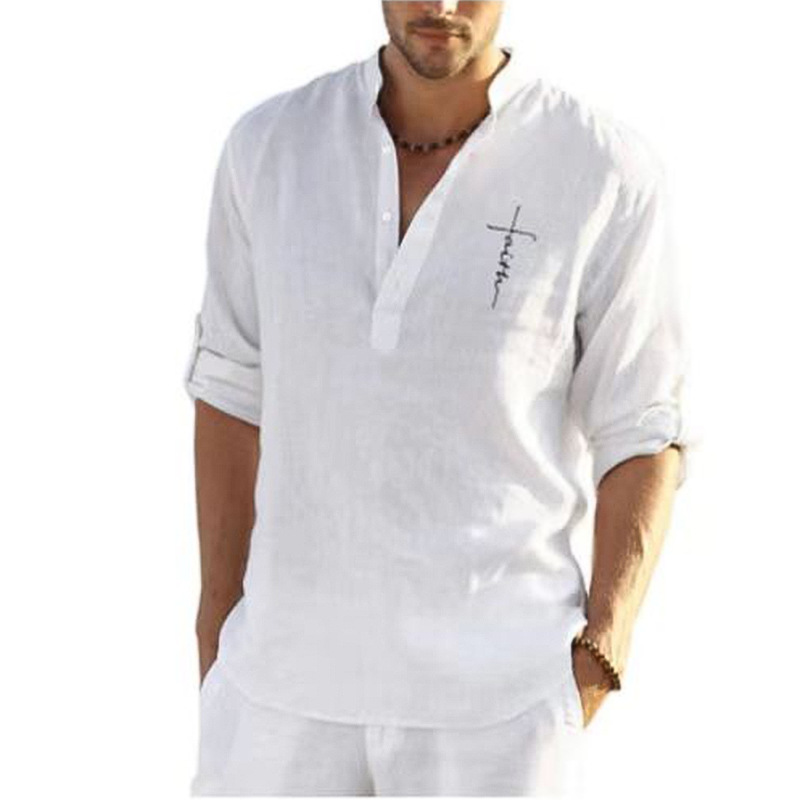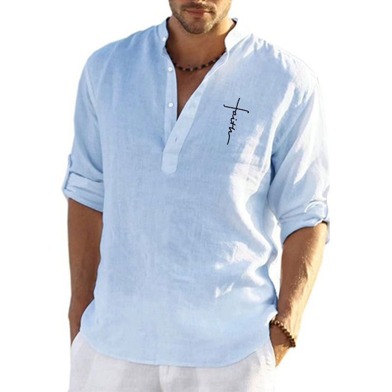 Европа и США трансграничная Внешняя торговля Мужская рубашка больших размеров с длинными рукавами и полуоткрытым воротником свободная хлопковая и льняная рубашка оптовая продажа с фабрики Мужская одежда