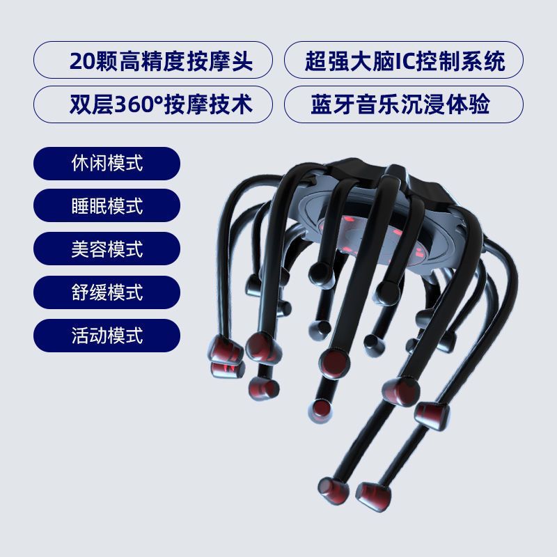 名称:头部按摩仪 功能:5个按摩模式,带蓝牙功能,红外理疗。