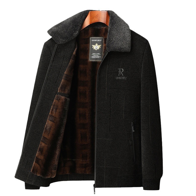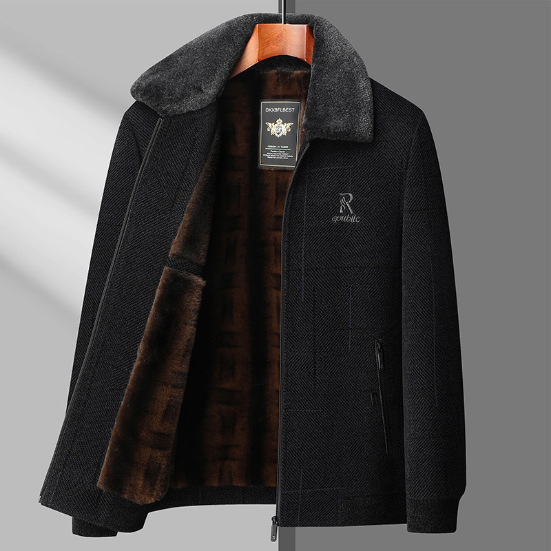 Папа зимняя одежда среднего и пожилого возраста синельная куртка Мужское пальто на хлопковой подкладке осенне-зимнее мужское шерстяное пальто среднего возраста на флисовой подкладке