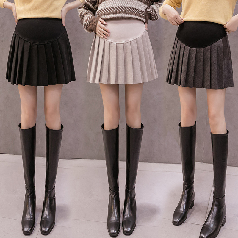 Юбка для беременных Весна и осень Плиссированная юбка для живота Осень и зима Шерстяная юбка-образной формы для беременных Одежда для беременных Осенняя одежда