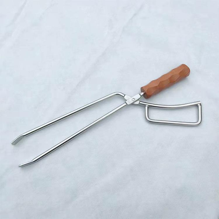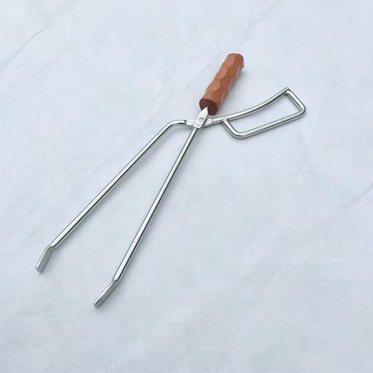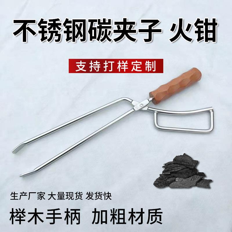 Горящие щипцы ручка из твердого бука карбоновый Зажим для барбекю удлиненный зажим для угля щипцы для утконоса из нержавеющей стали Углеродные щипцы