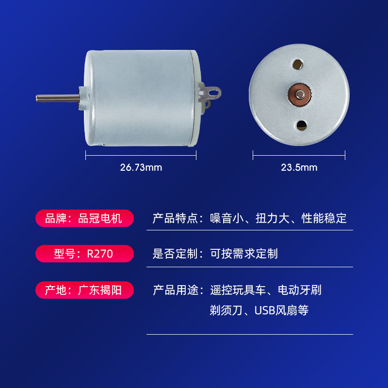 揭阳市品冠科技有限公司是一家集设计、开发、生产、销售于一体的微电机专业生产厂家.产品广泛应用于航模、玩具、家用电器、视听设备、车载DVD、电子门锁、医疗器械、保健品、电动牙刷、剃须刀、电吹风、舞台灯光、汽车门锁、后视镜、自动验钞机、气泵水泵等设备.目前具备生产能力机种:030、130、140、FF180、260、280、360(365)、380(385)、390、540(545)、550(555)、750(755),转向电机等系列组成.客户满意是我们的原则,本着品冠一贯对微电机精工铸造精神,使得品冠电机成为国内外众多企业的理想合作伙伴.