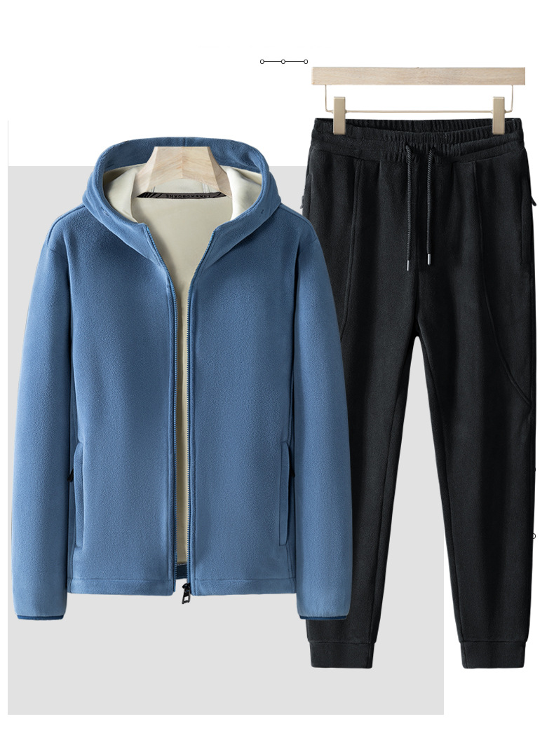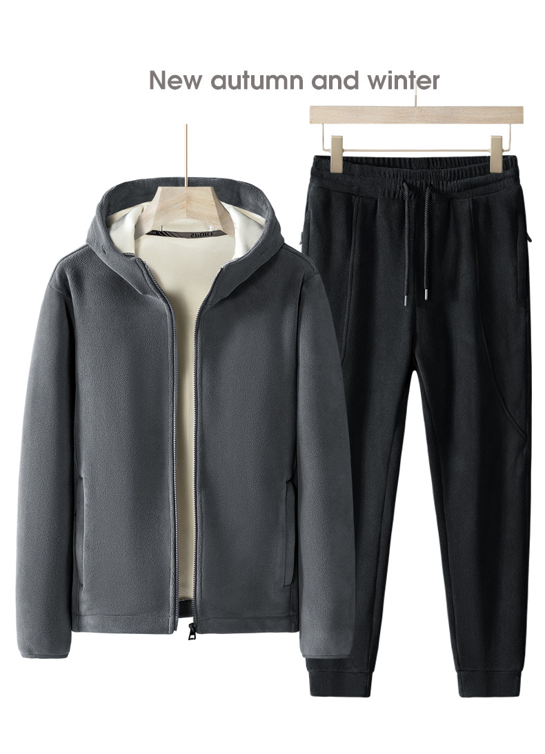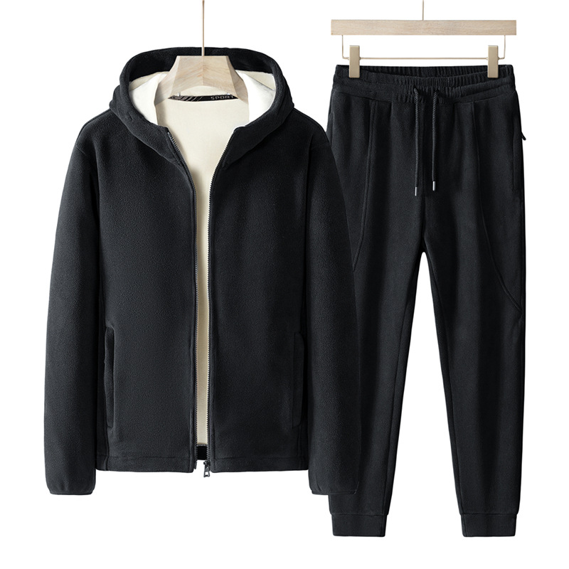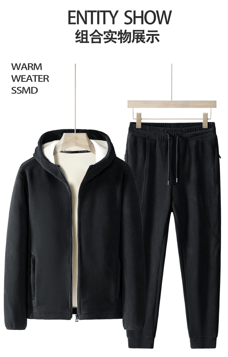 Утолщенный комплект из двух предметов на флисовой подкладке, осенне-зимний теплый повседневный спортивный костюм с капюшоном, Мужское пальто, флисовый свитер больших размеров