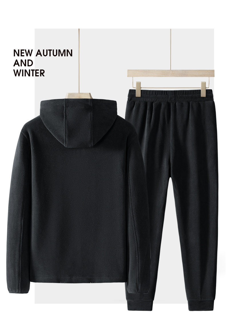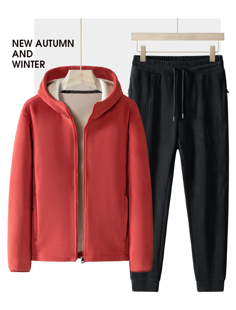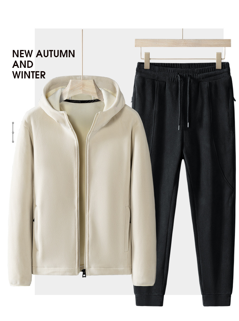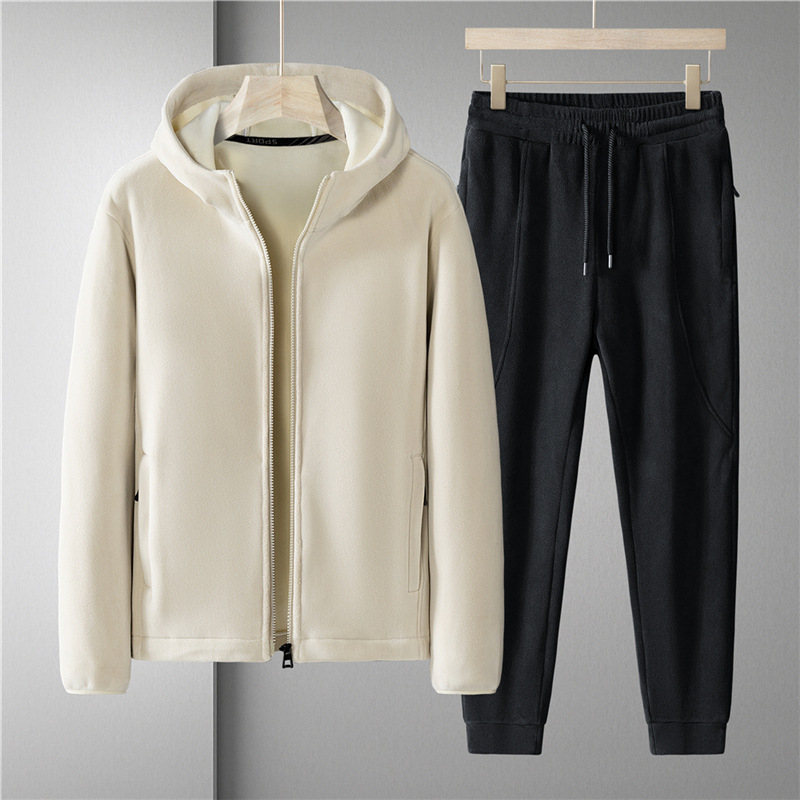 Утолщенный комплект из двух предметов на флисовой подкладке, осенне-зимний теплый повседневный спортивный костюм с капюшоном, Мужское пальто, флисовый свитер больших размеров