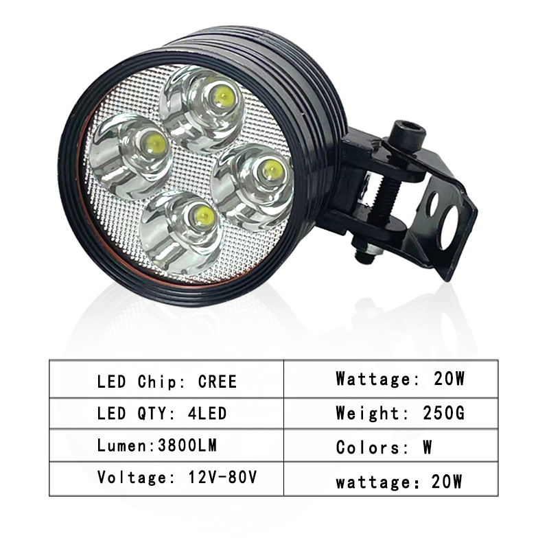 圆形超亮LED电动车大灯 L4X三轮车改装大灯4珠摩托车外置强光射灯