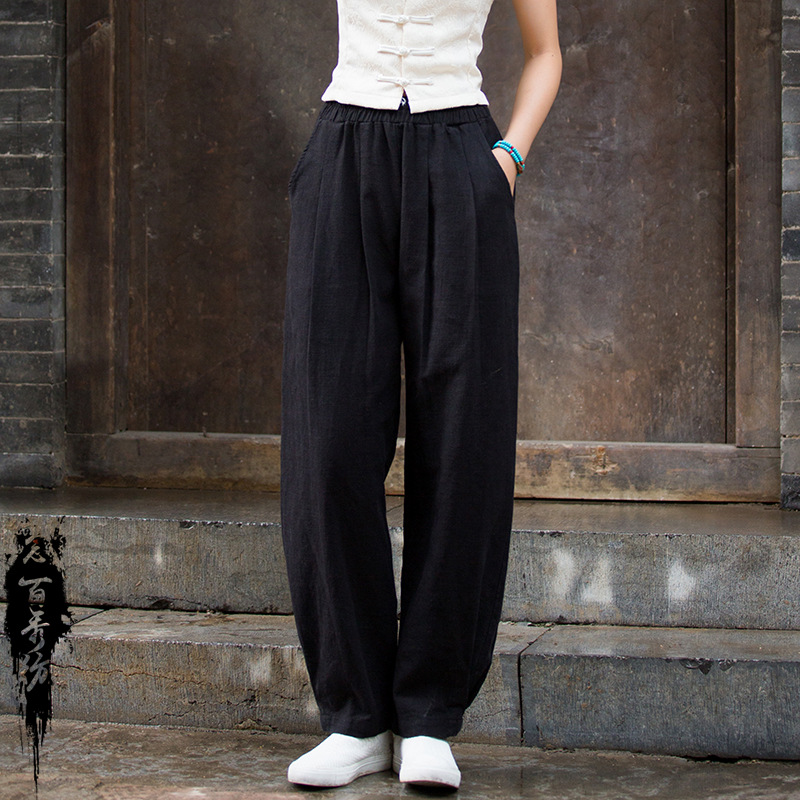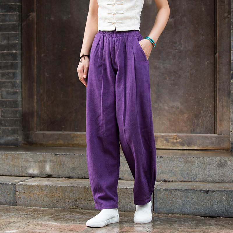 Новинка осени/зимы 2025: Женские брюки из хлопка и льна, художественные, с эффектом песочной стирки, свободные, приталенные, длинные, женские льняные брюки-фонарики