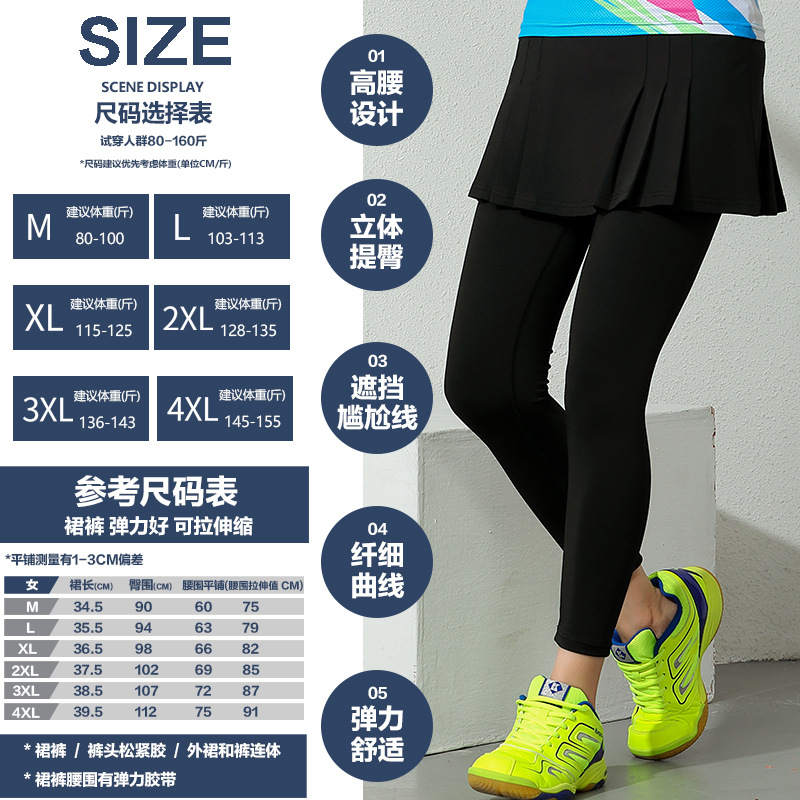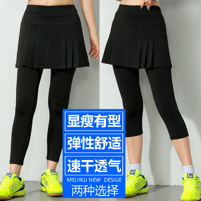 Новая быстросохнущая юбка для йоги и тенниса Бег плюс размер Юбка для бадминтона Спортивная девятиконечная поддельная плиссированная юбка из двух частей Брюки для женщин
