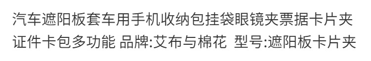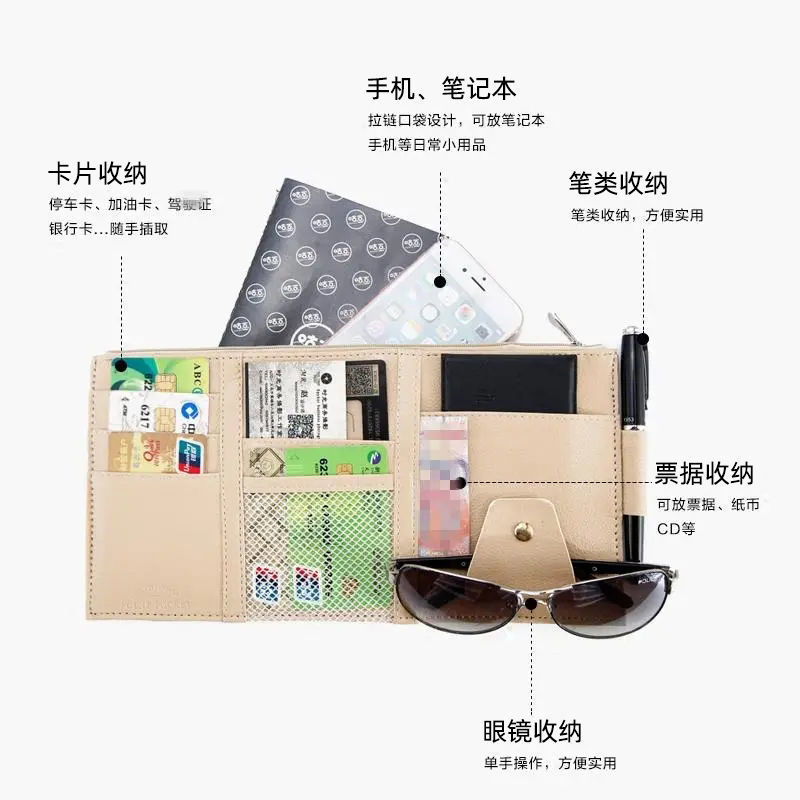 Автомобильный солнцезащитный козырек Автомобильная сумка для хранения мобильного телефона Подвесная сумка Держатель для очков Билл Держатель карты Сертификат Сумка для карт Многофункциональная